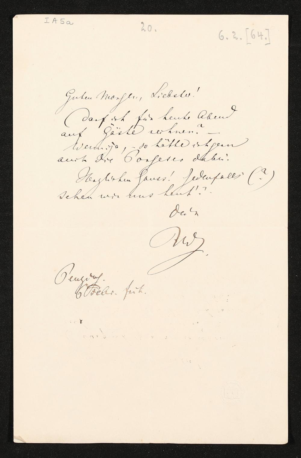 eigenhändiger Brief von Richard Wagner an Josef Standhartner