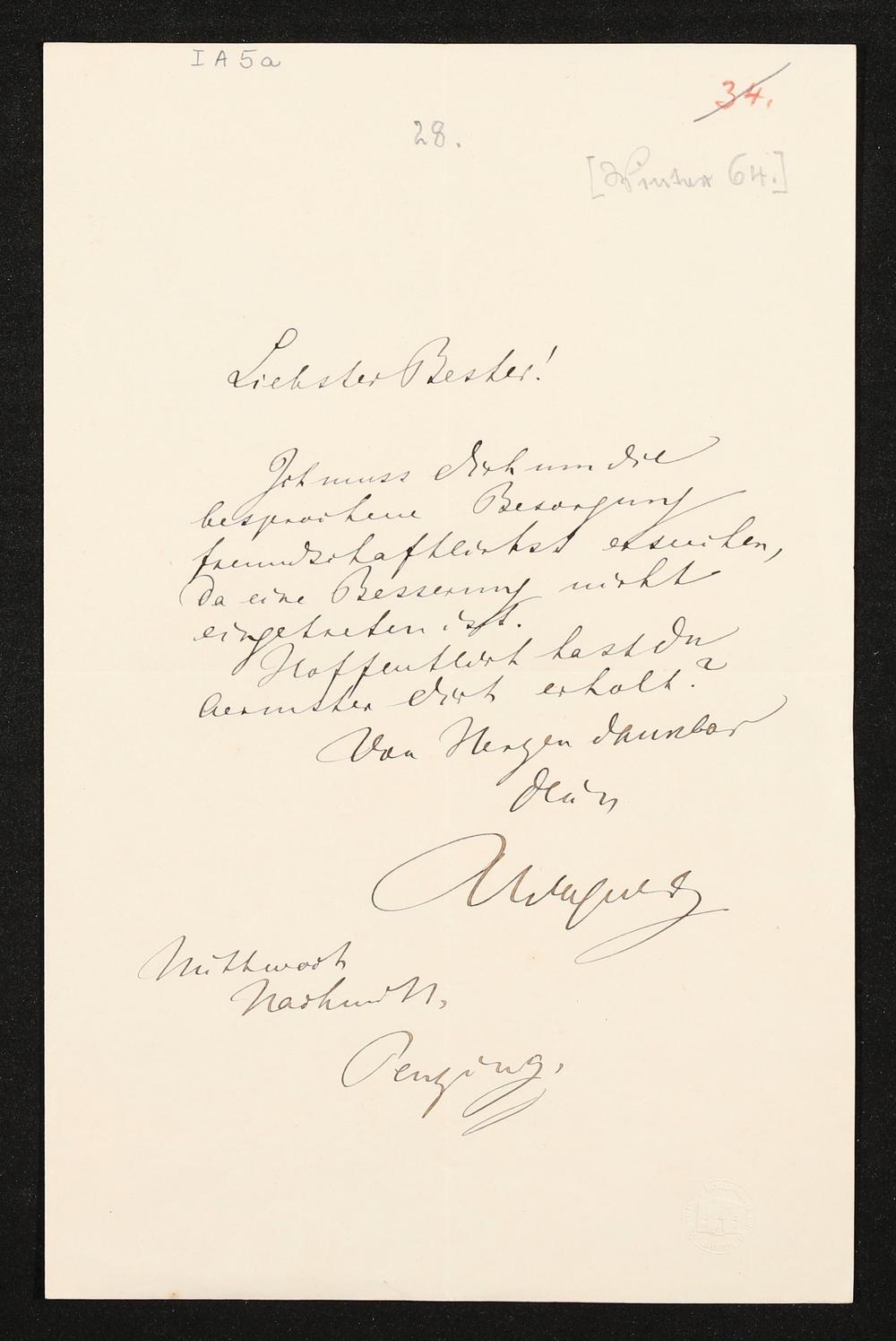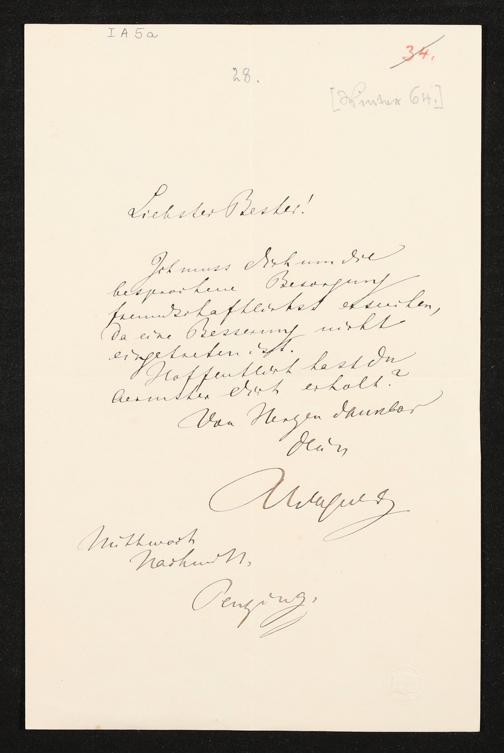 eigenhändiger Brief von Richard Wagner an Josef Standhartner