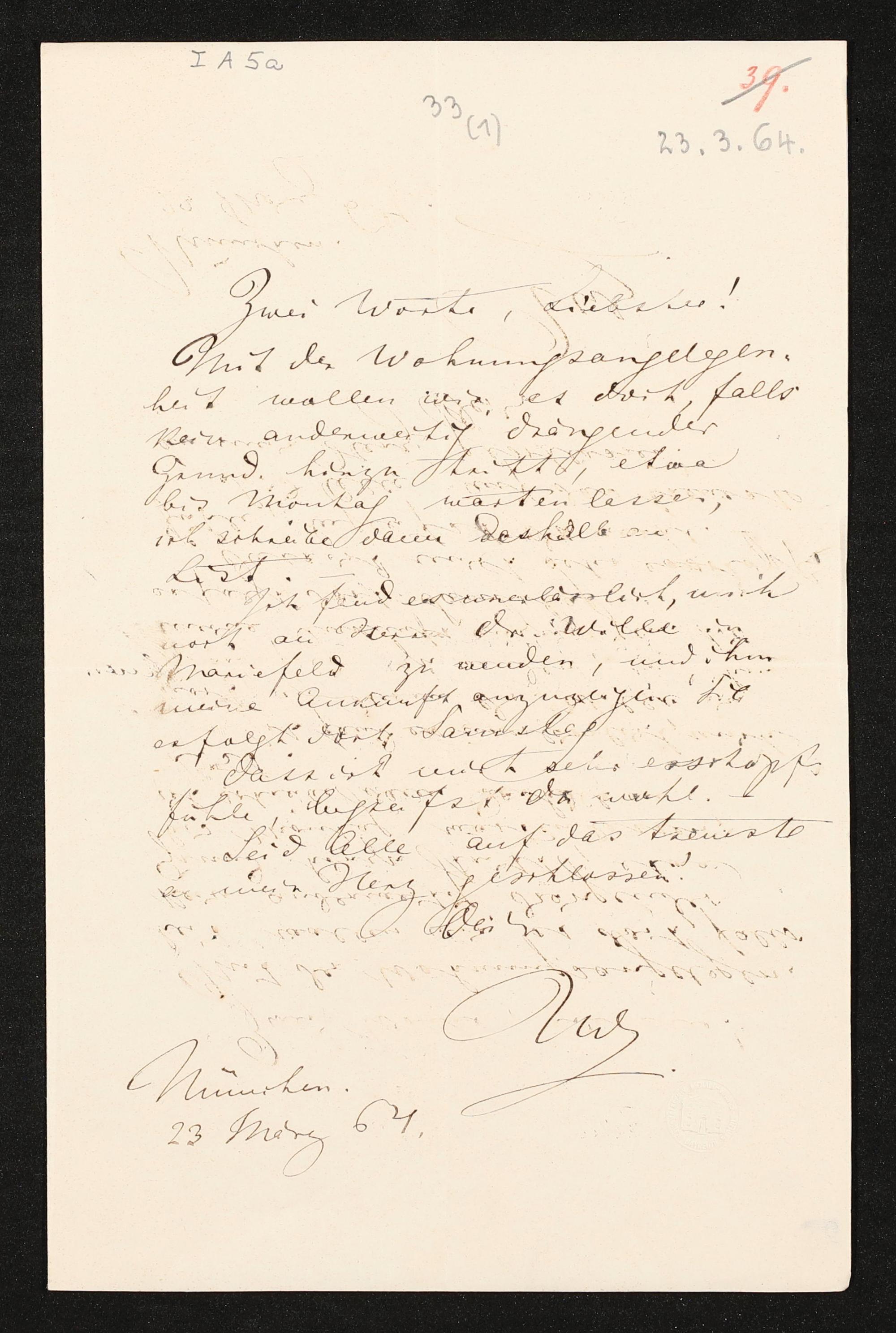 eigenhändiger Brief von Richard Wagner an Josef Standhartner