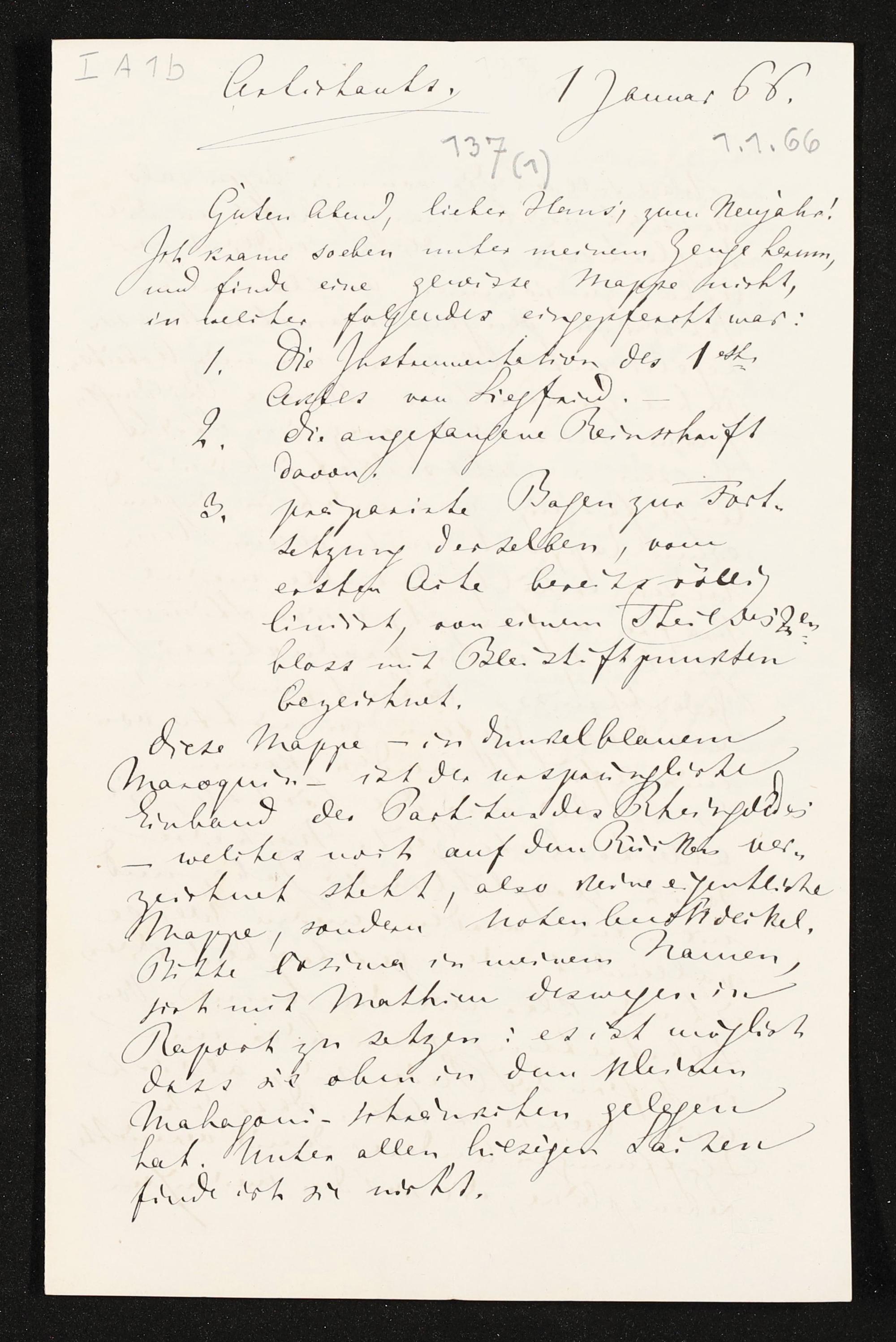 eigenhändiger Brief von Richard Wagner an Hans von Bülow