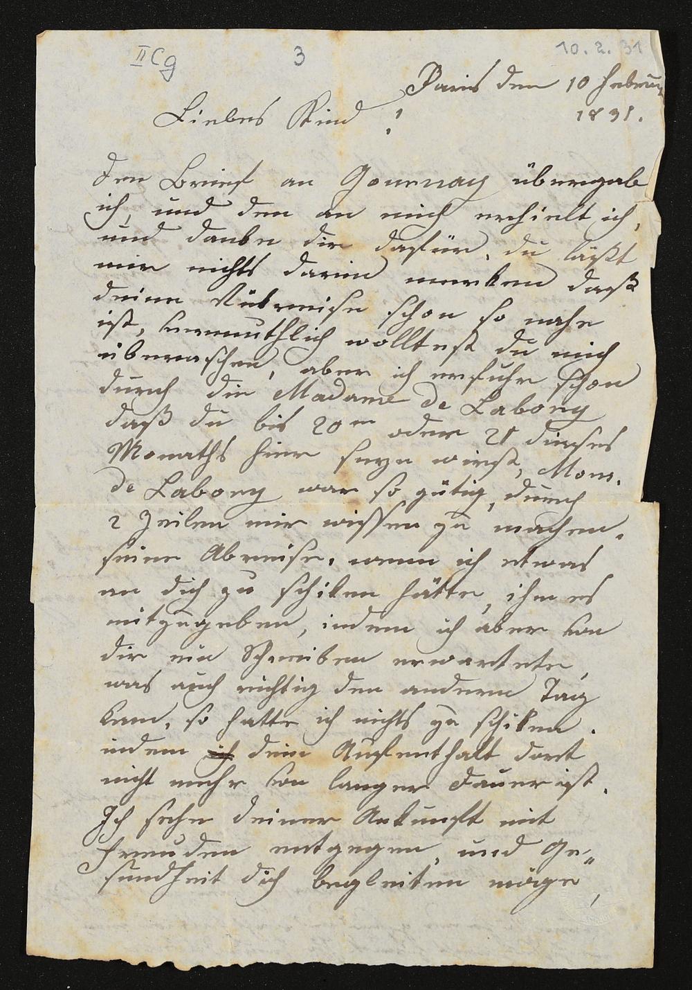 eigenhändiger Brief von Maria Anna Liszt an Franz Liszt