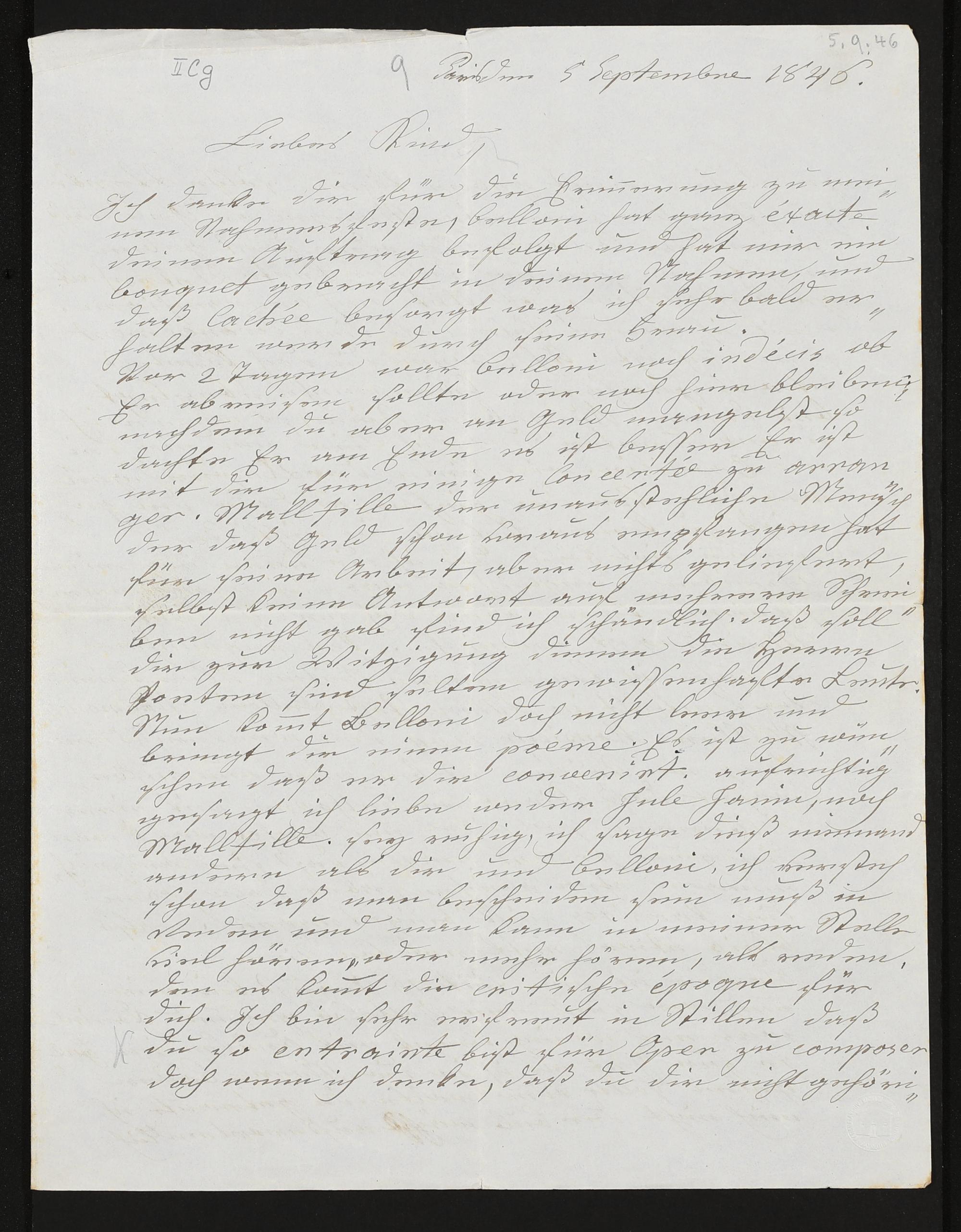 eigenhändiger Brief von Maria Anna Liszt an Franz Liszt