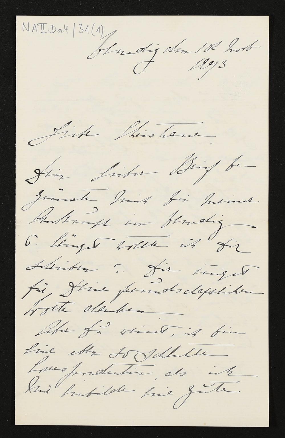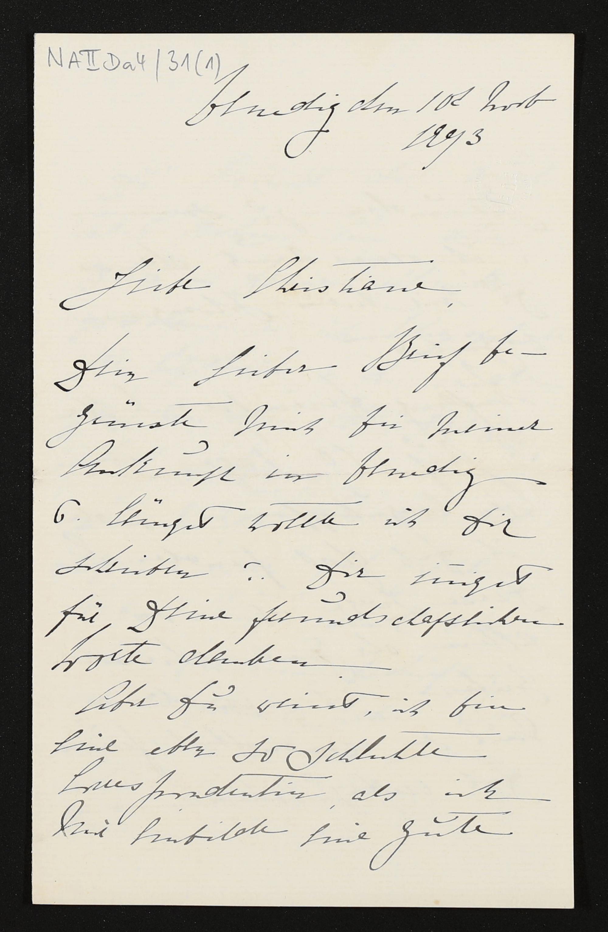 eigenhändiger Brief von Marie Gräfin Wolkenstein-Trostburg an Christiane Gräfin Thun-Hohenstein-Salm