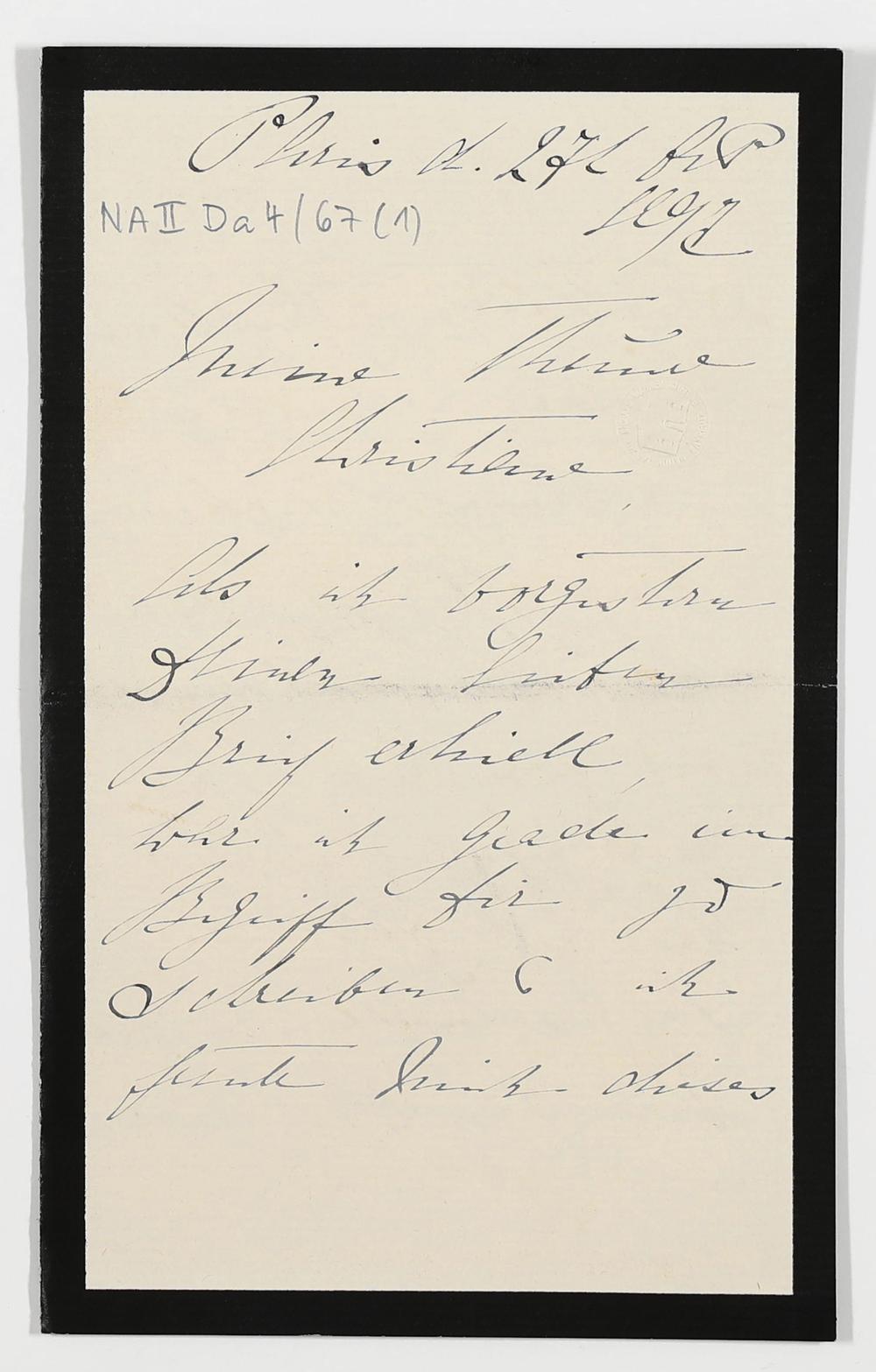 eigenhändiger Brief von Marie Gräfin Wolkenstein-Trostburg an Christiane Gräfin Thun-Hohenstein-Salm