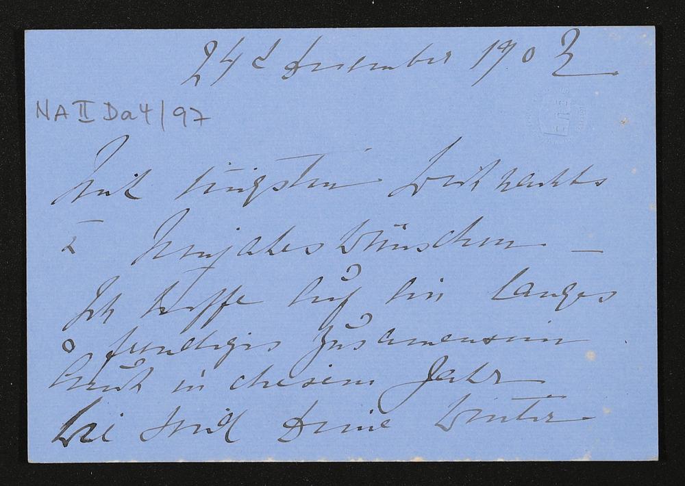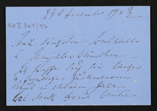 eigenhändige Briefkarte von Marie Gräfin Wolkenstein-Trostburg an Christiane Gräfin Thun-Hohenstein-Salm