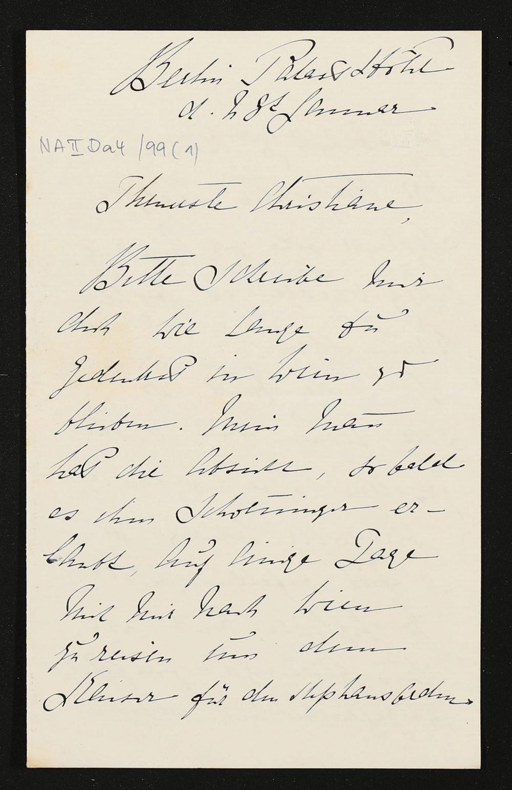 eigenhändiger Brief von Marie Gräfin Wolkenstein-Trostburg an Christiane Gräfin Thun-Hohenstein-Salm
