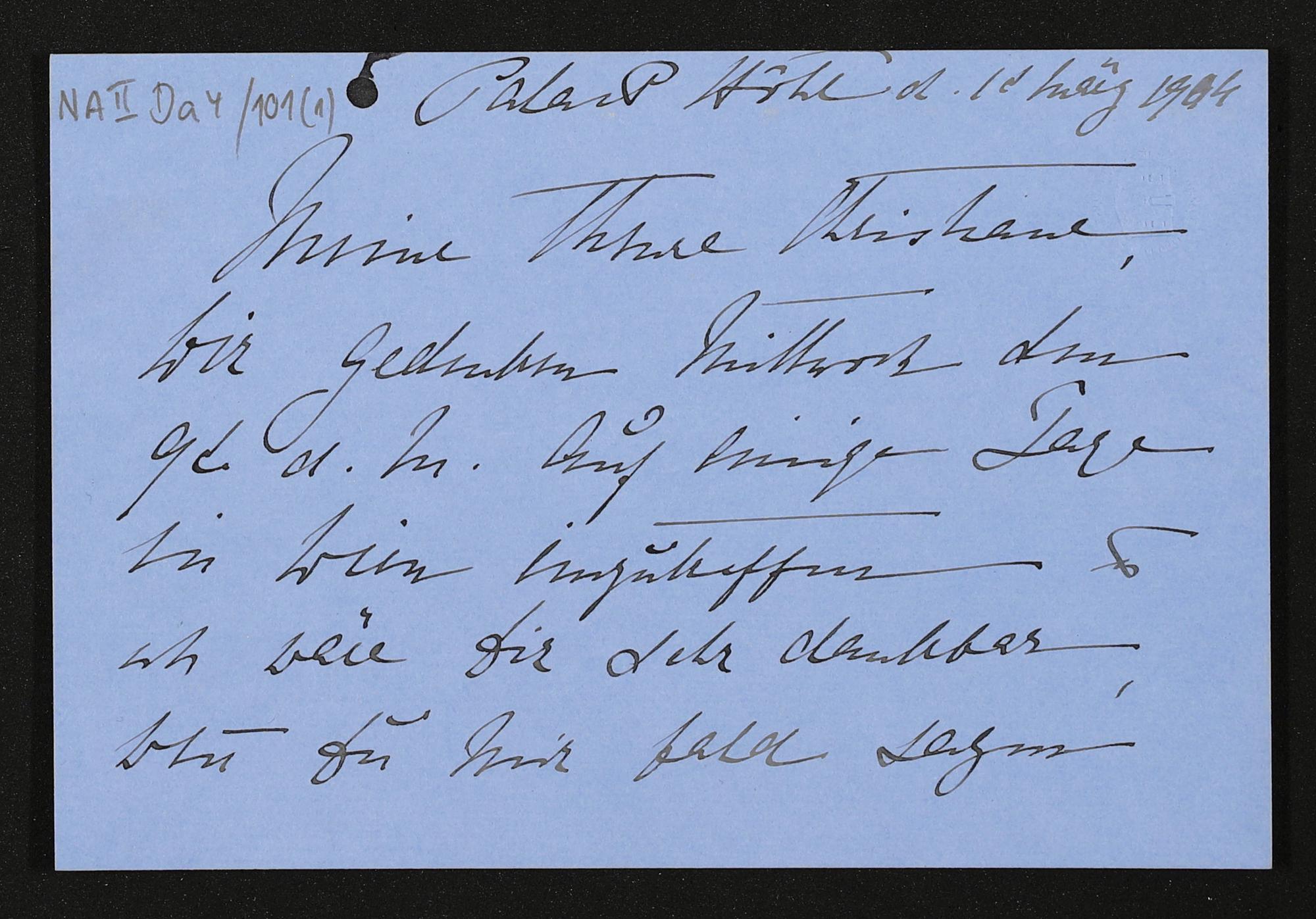 eigenhändige Briefkarte von Marie Gräfin Wolkenstein-Trostburg an Christiane Gräfin Thun-Hohenstein-Salm