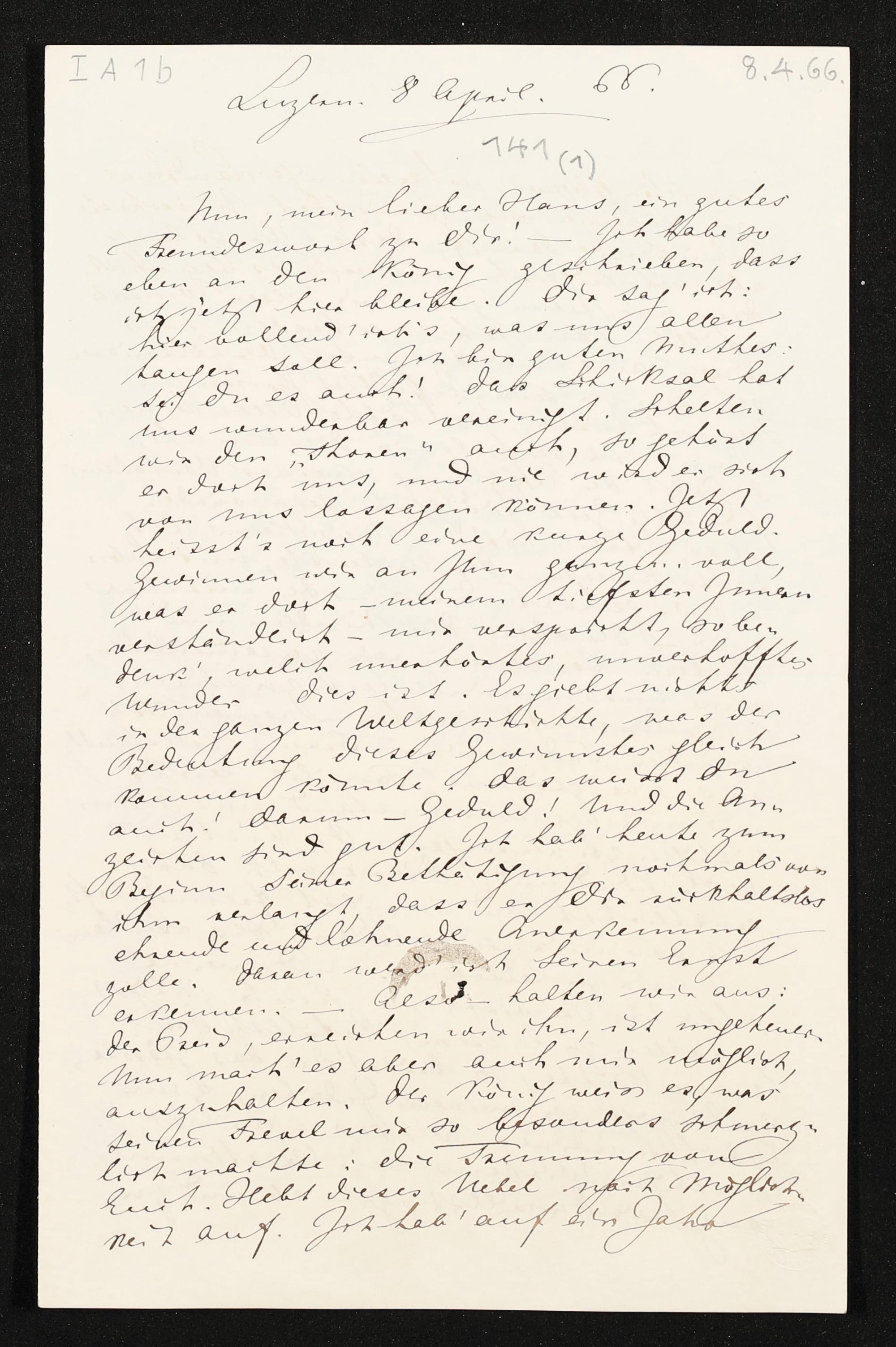 eigenhändiger Brief von Richard Wagner an Hans von Bülow