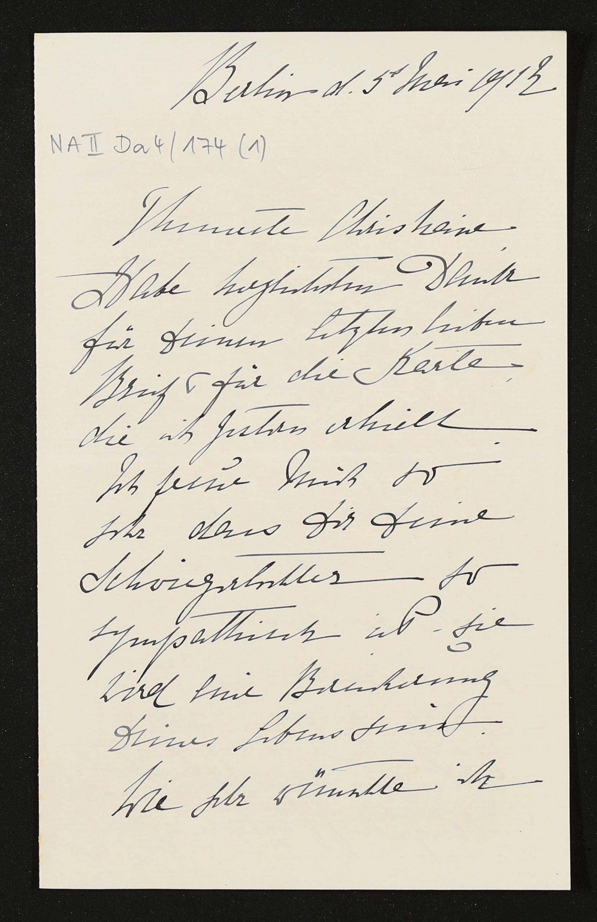 eigenhändiger Brief von Marie Gräfin Wolkenstein-Trostburg an Christiane Gräfin Thun-Hohenstein-Salm