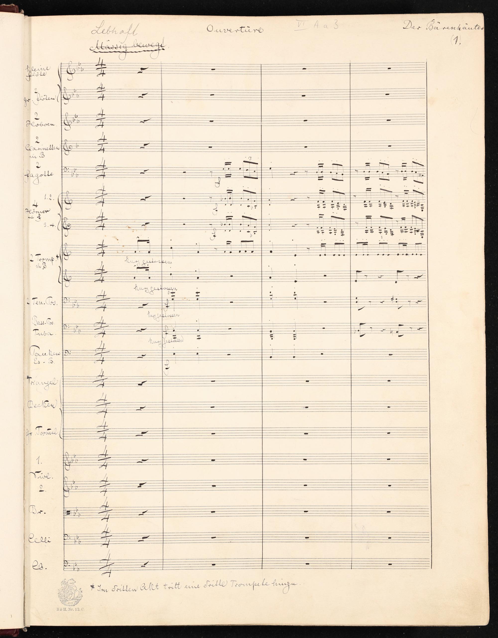 Der Bärenhäuter, eigenhändige Partitur von Siegfried Wagner
