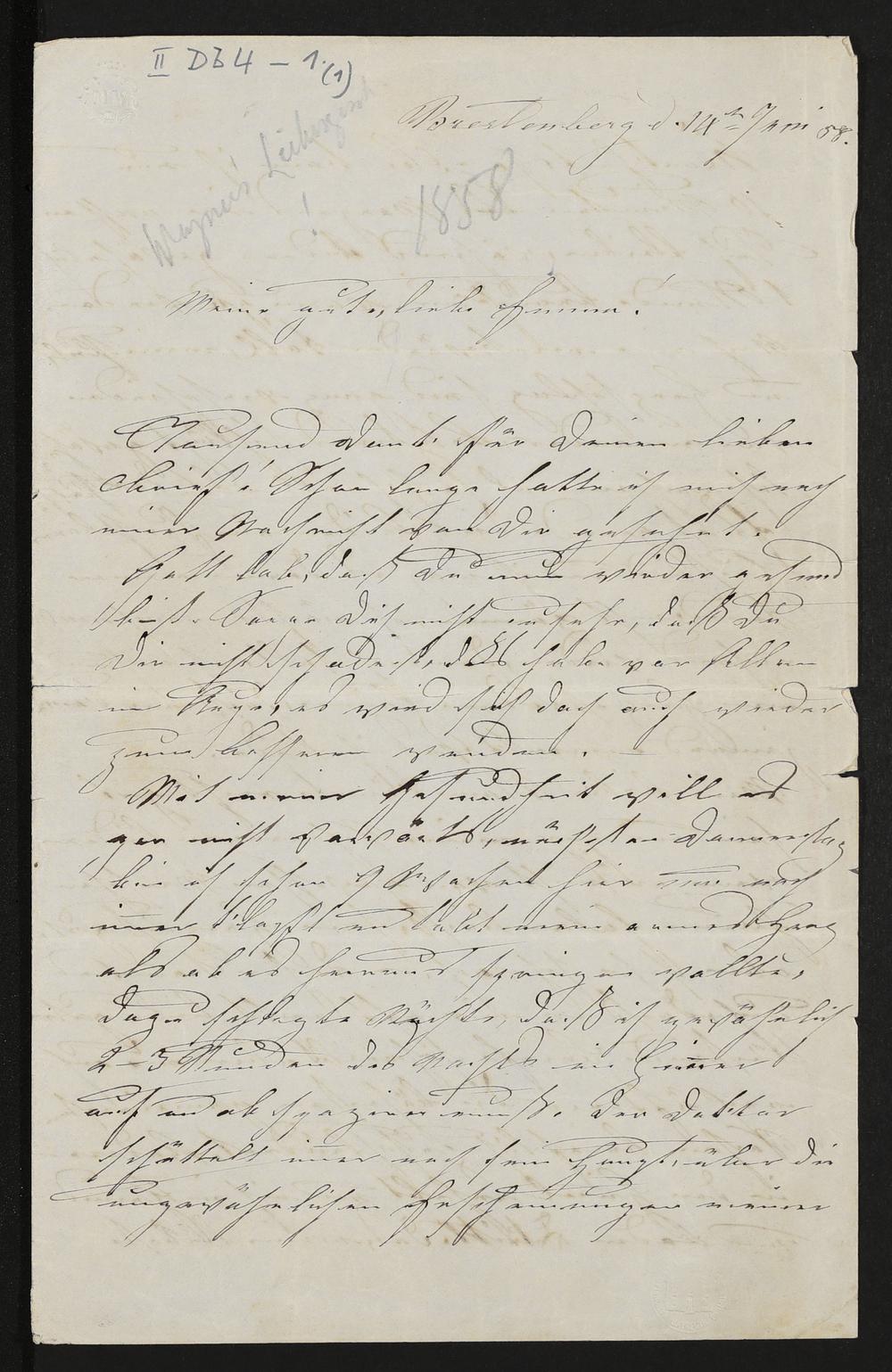 eigenhändiger Brief von Minna Wagner an Emma Herwegh