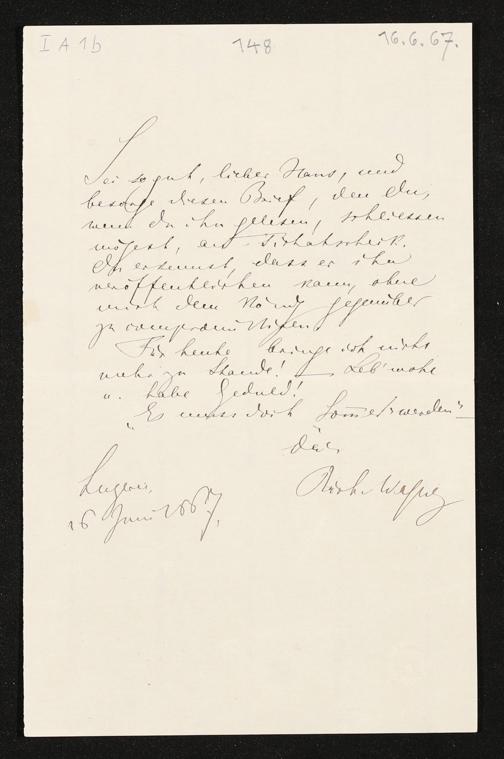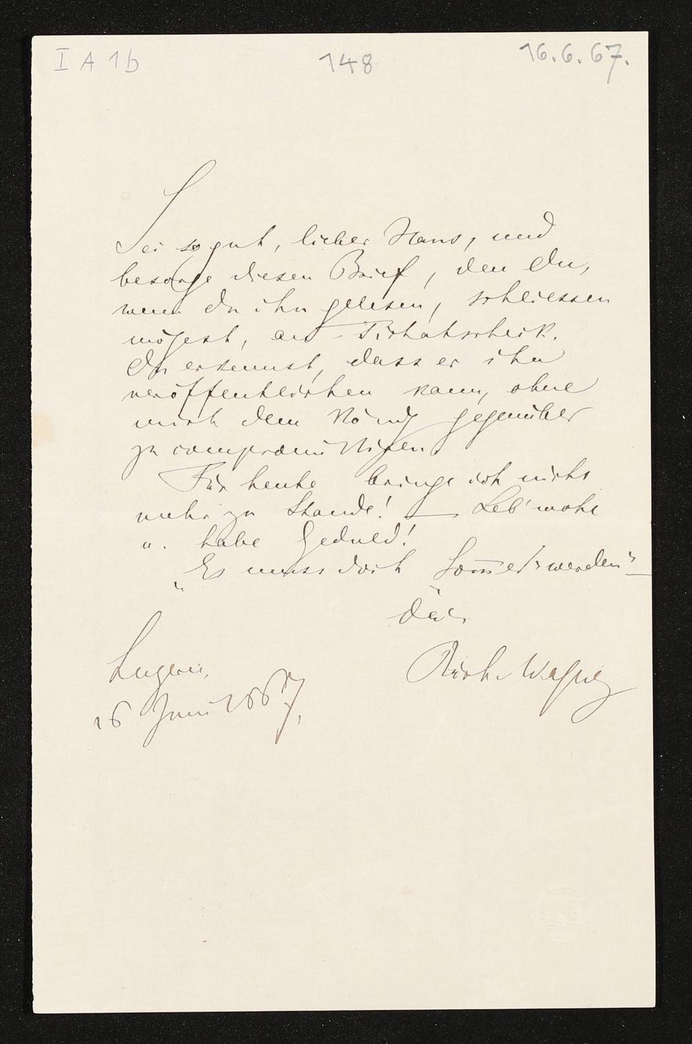 eigenhändiger Brief von Richard Wagner an Hans von Bülow
