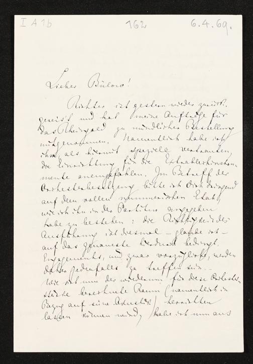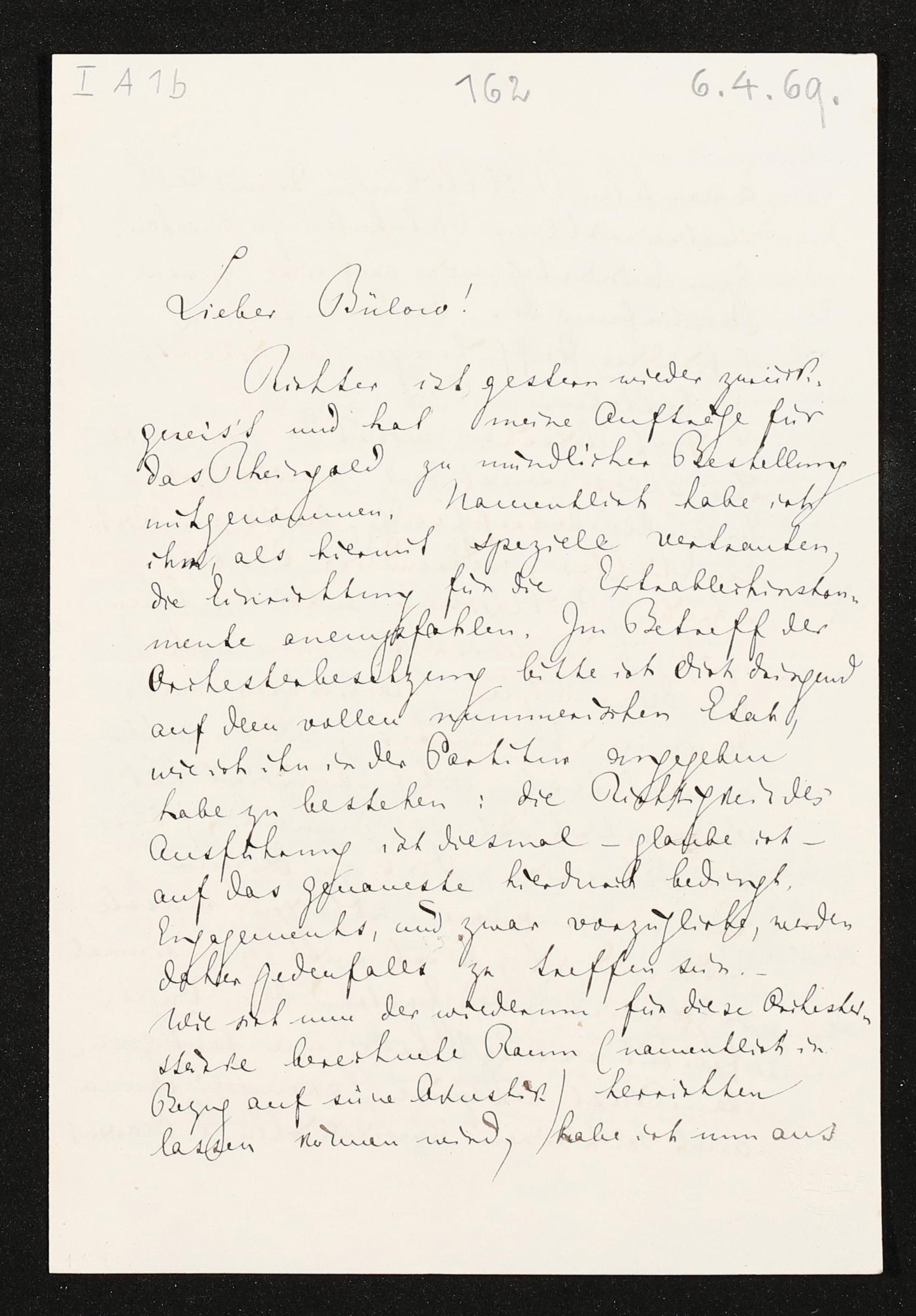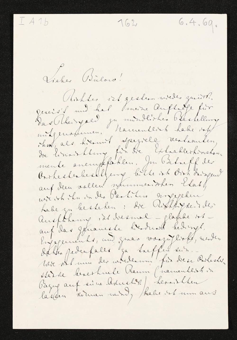 eigenhändiger Brief von Richard Wagner an Hans von Bülow