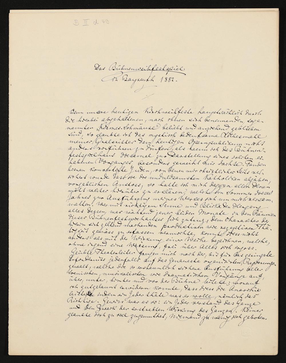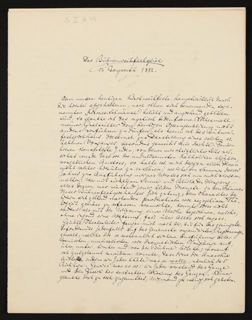 Das Bühnenweihfestspiel in Bayreuth 1882, eigenhändiger Aufsatz von Richard Wagner, Zweitschrift