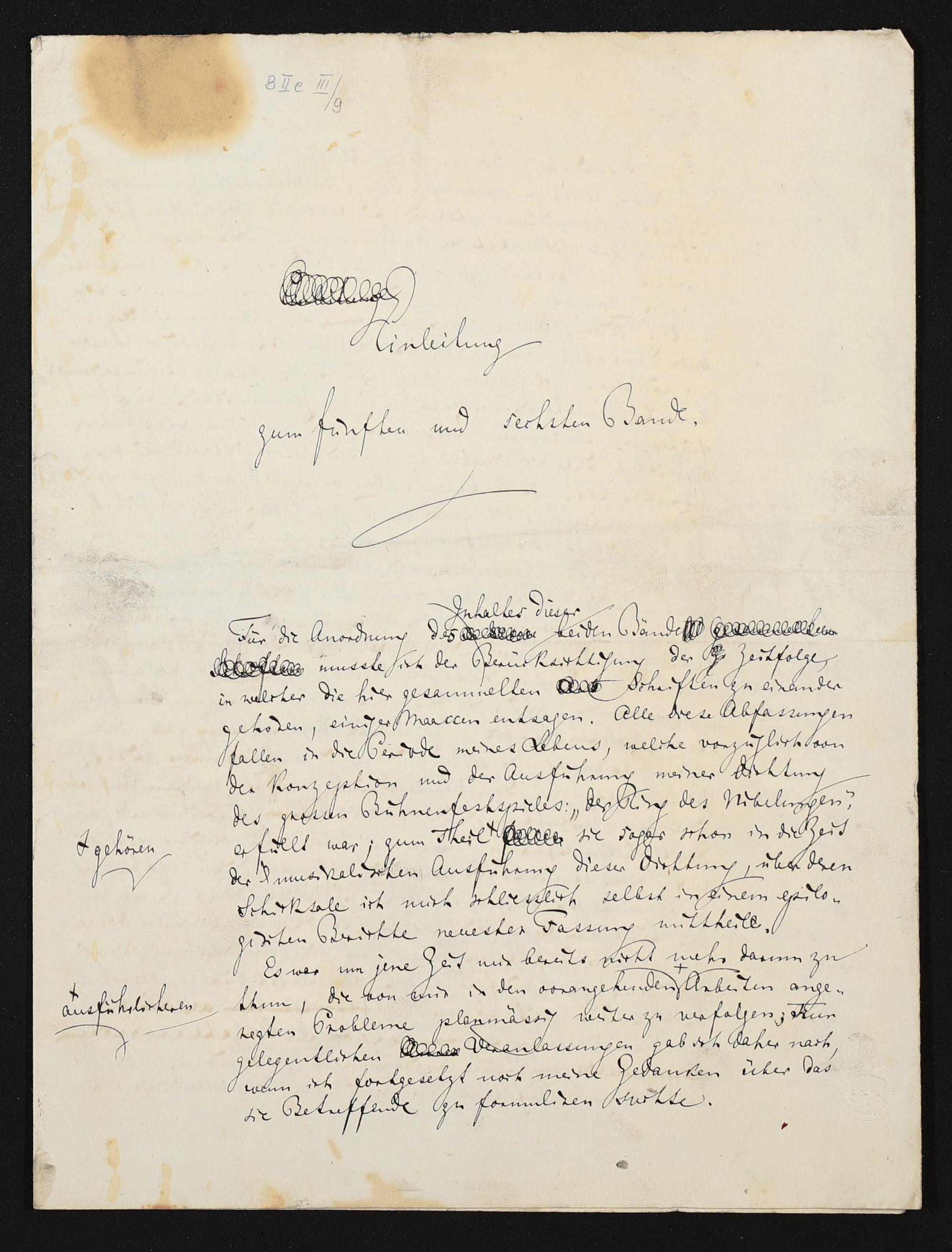 Einleitung zum V. und VI. Band der "Gesammelten Schriften und Dichtungen" von Richard Wagner, Urschrift