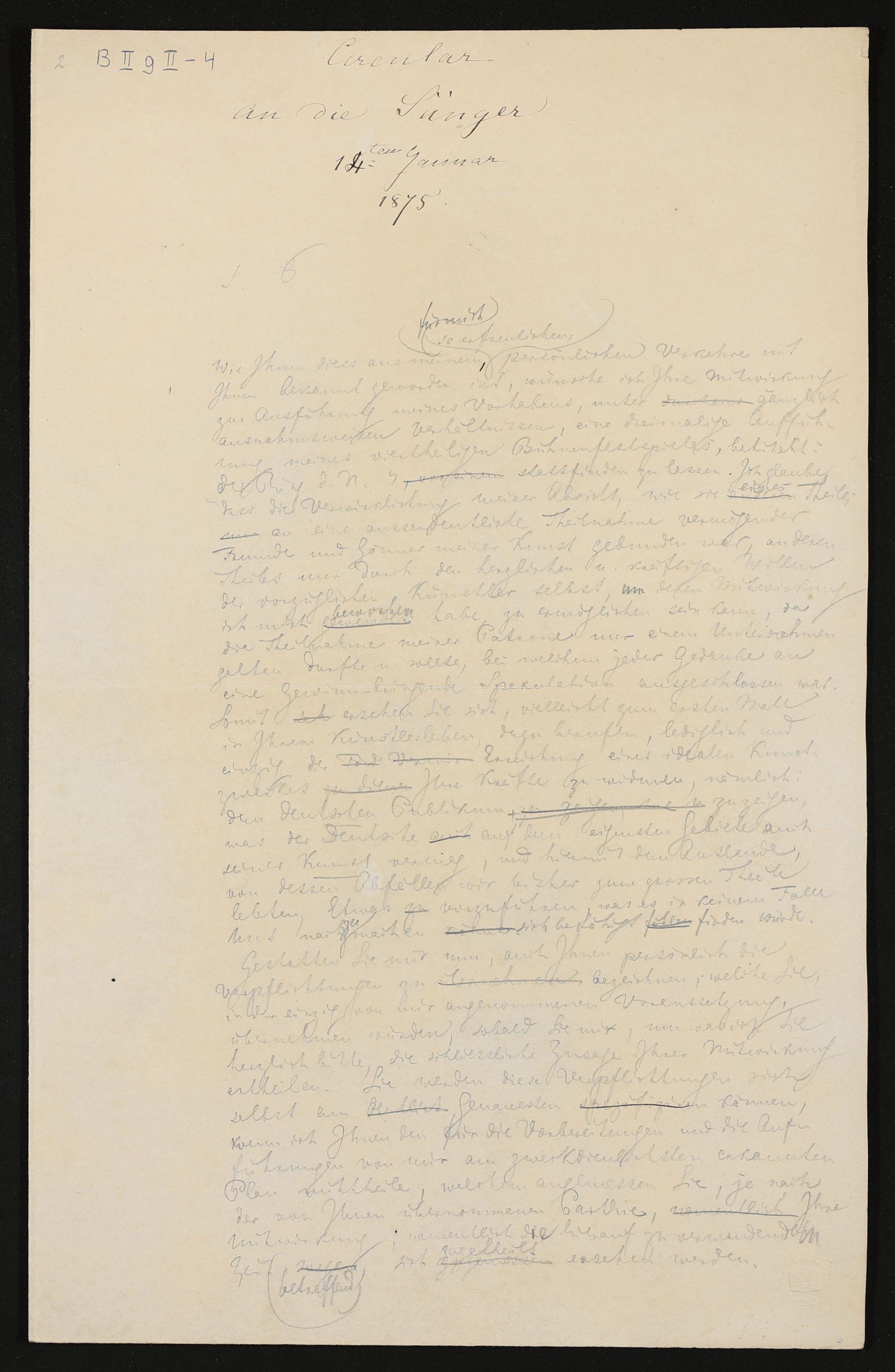 Circular an die Sänger, 14. Januar 1875, von Richard Wagner