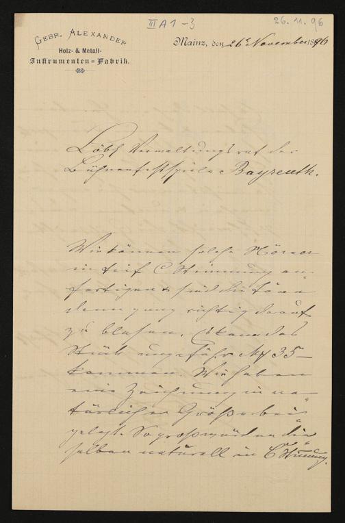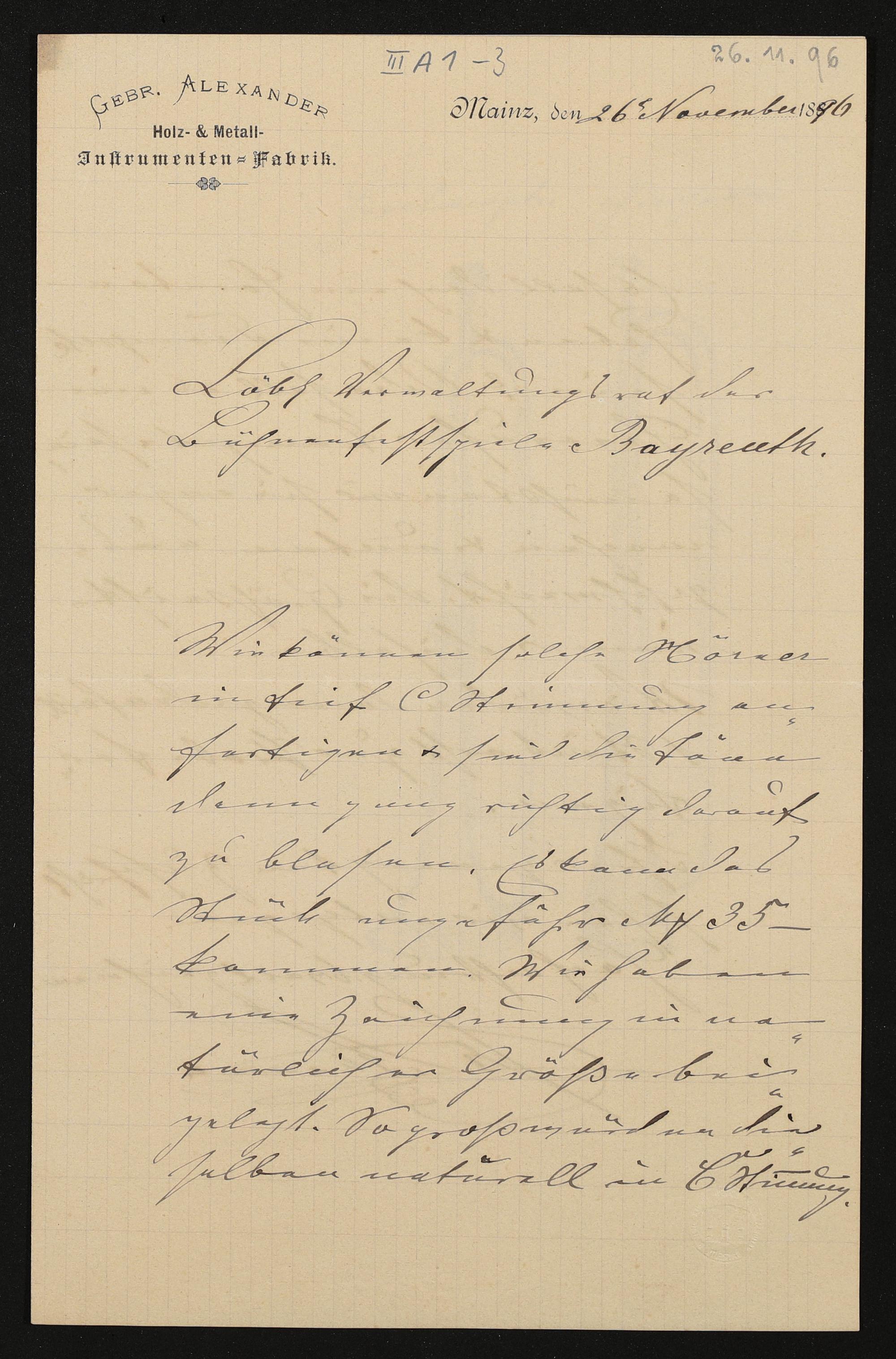 eigenhändiger Brief von Georg Alexander an den Verwaltungsrat der Bühnenfestspiele Bayreuth