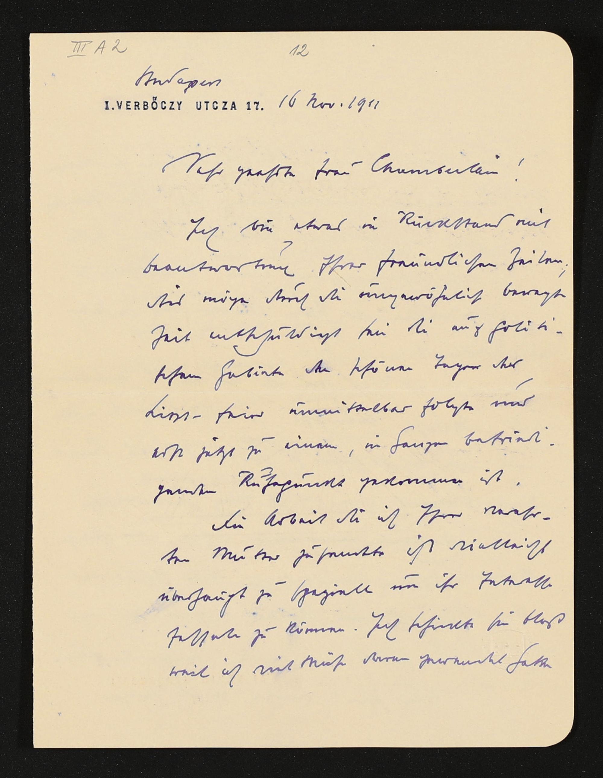 eigenhändiger Brief von Albert Apponyi an Eva Chamberlain