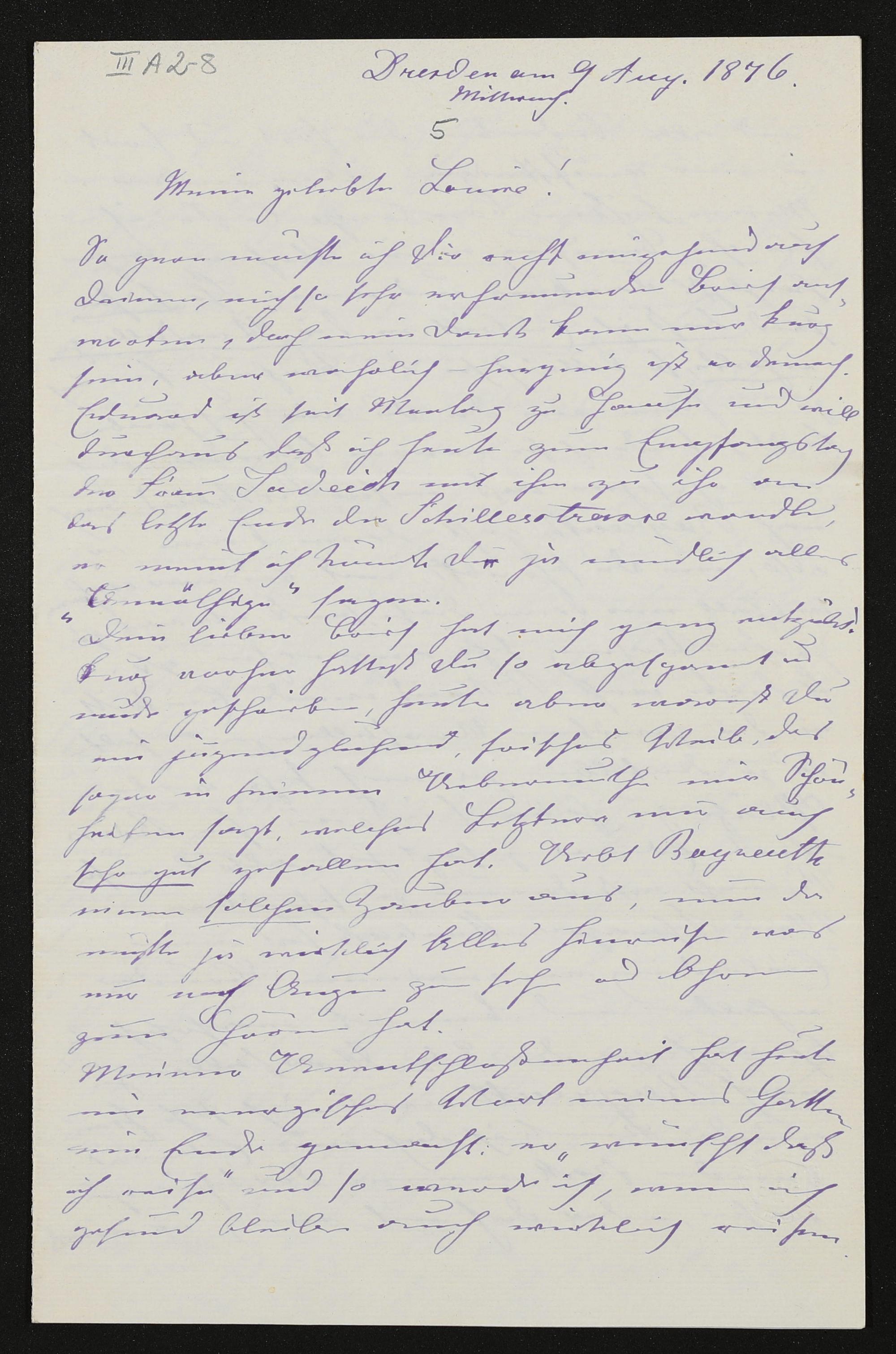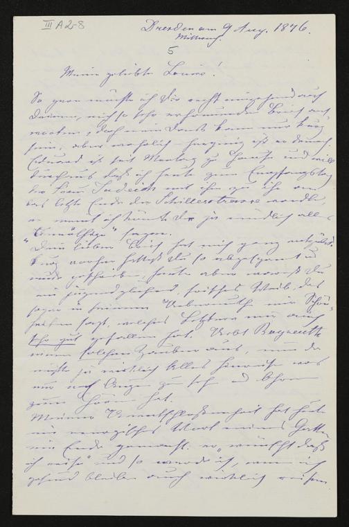 eigenhändiger Brief von Cäcilie Avenarius an Louise Heinrich