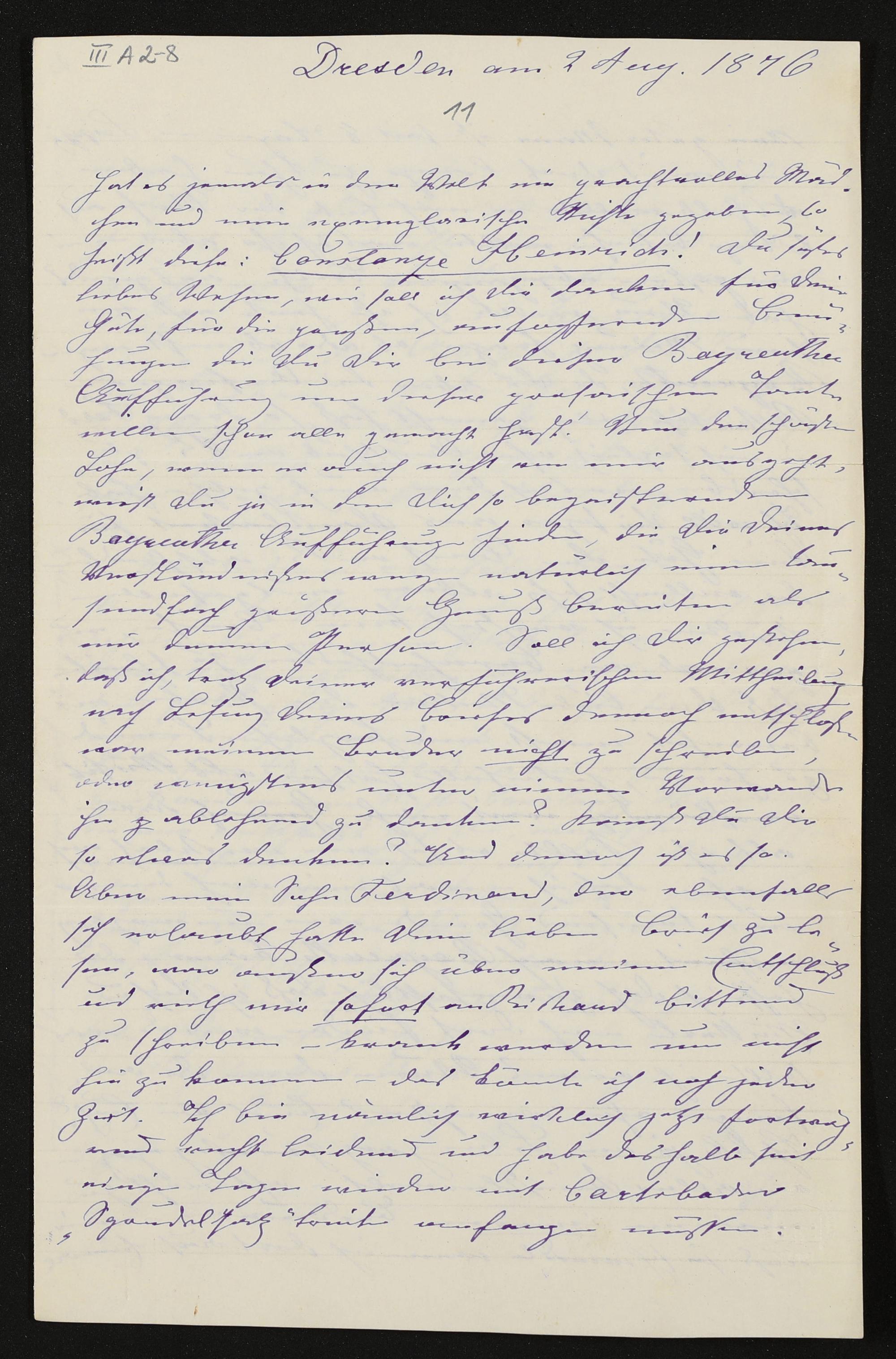 eigenhändiger Brief von Cäcilie Avenarius an Constanze Heinrich