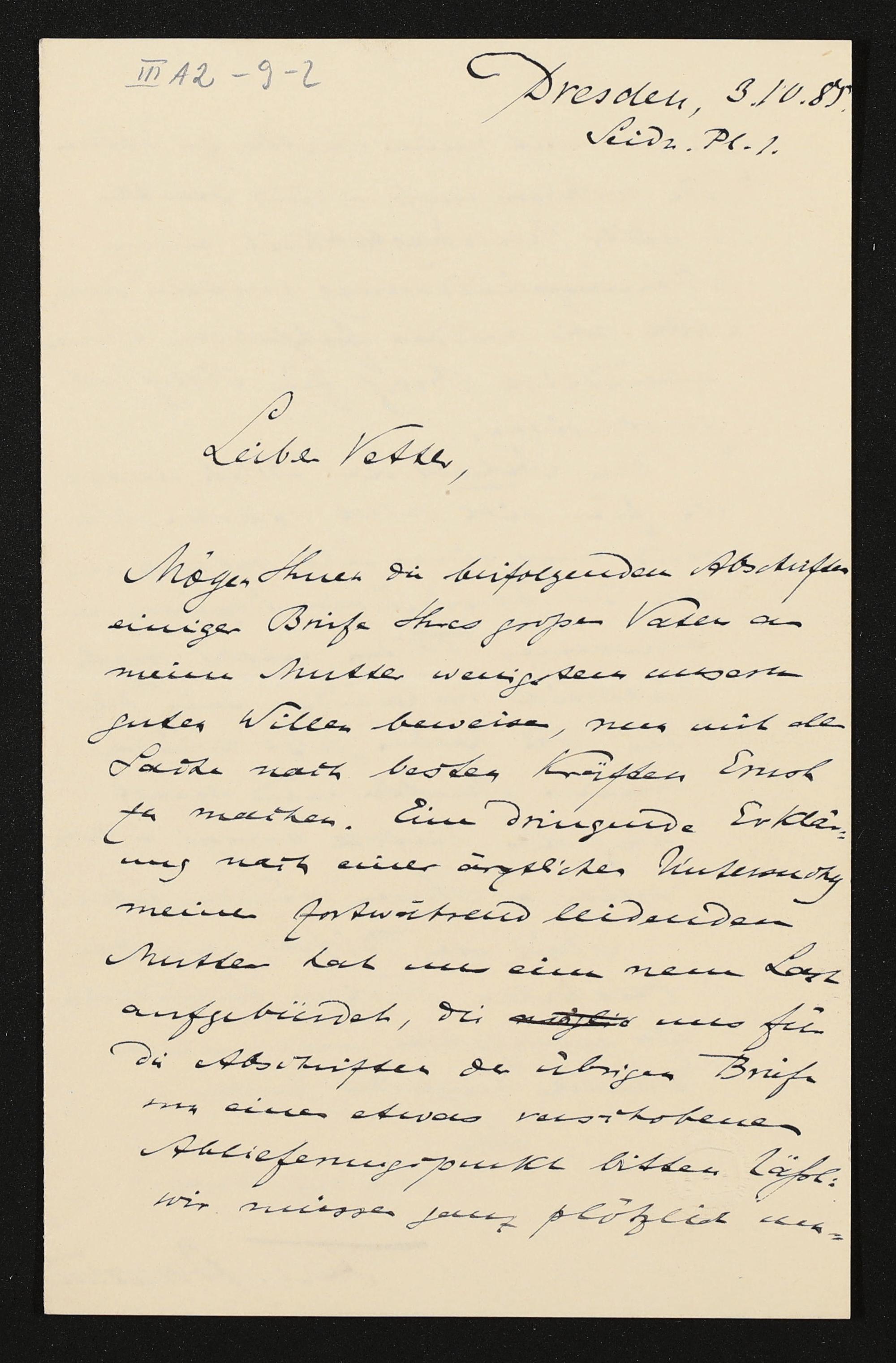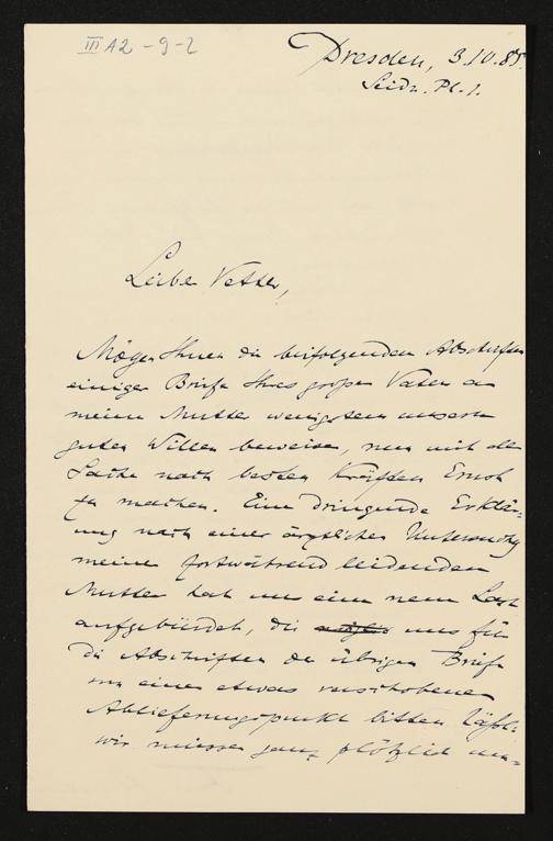 eigenhändiger Brief von Ferdinand Avenarius mutmaßlich an Siegfried Wagner