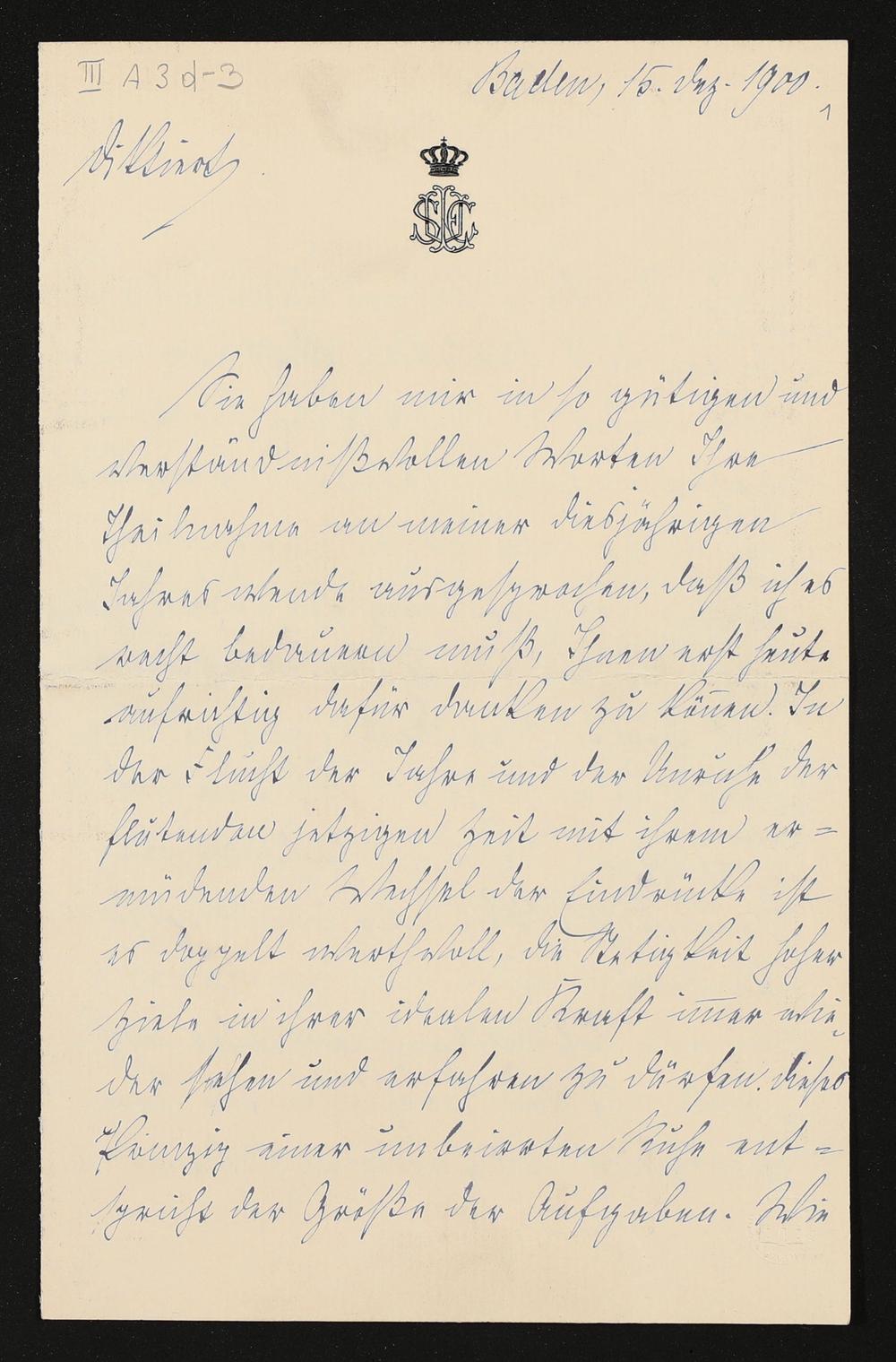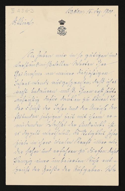 diktierter Brief von Großherzogin Luise von Baden mutmaßlich an Cosima Wagner