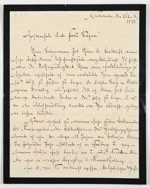 eigenhändiger Brief von Prinz Max von Baden an Cosima Wagner