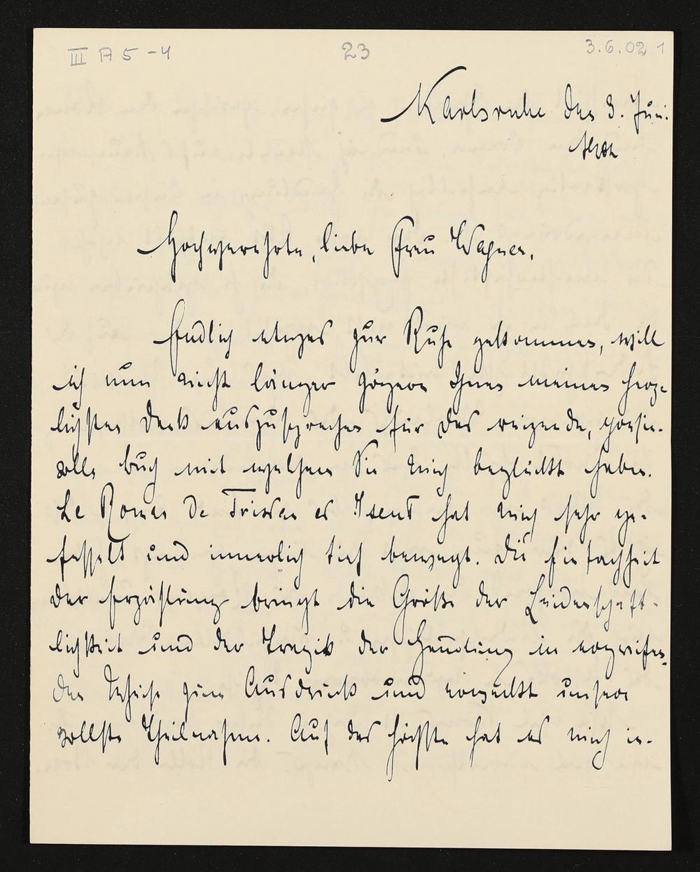 eigenhändiger Brief von Prinz Max von Baden an Cosima Wagner