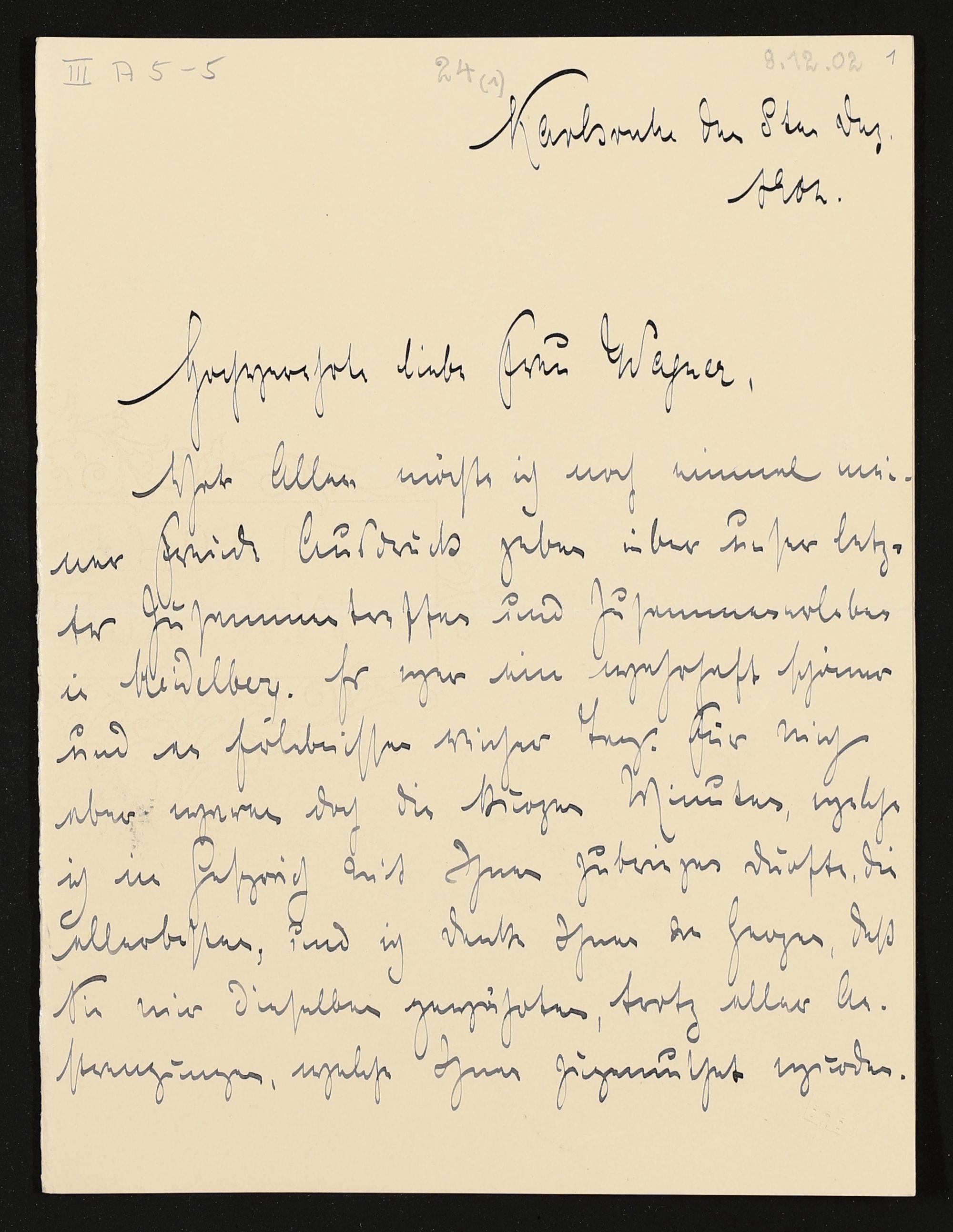 eigenhändiger Brief von Prinz Max von Baden an Cosima Wagner