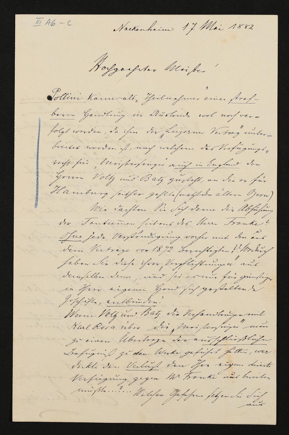 eigenhändiger Brief von Carl W. Batz an Richard Wagner
