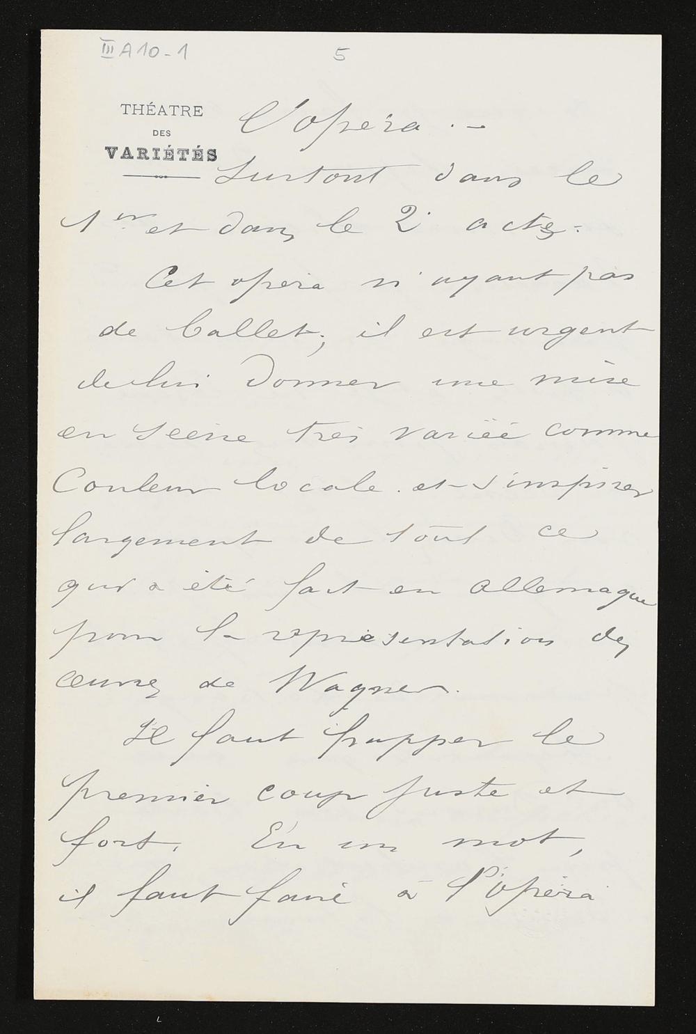 eigenhändiger Brief mutmaßlich von Eugène Bertrand mutmaßlich an Siegfried Wagner
