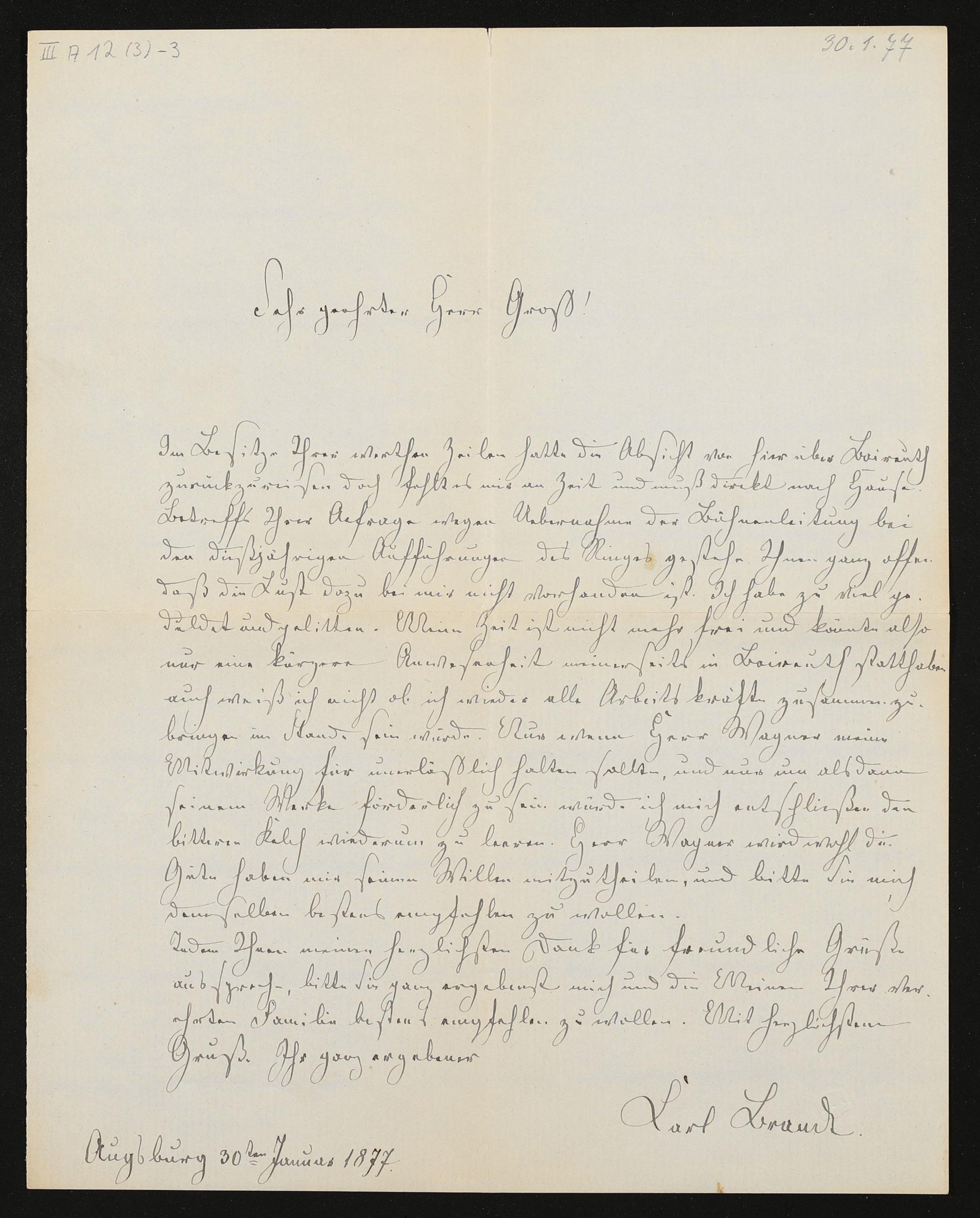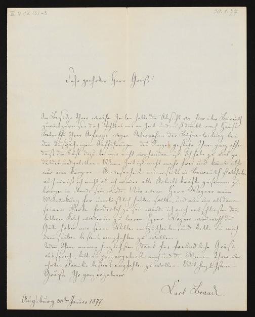 eigenhändiger Brief von Carl Brandt an Adolf von Gross