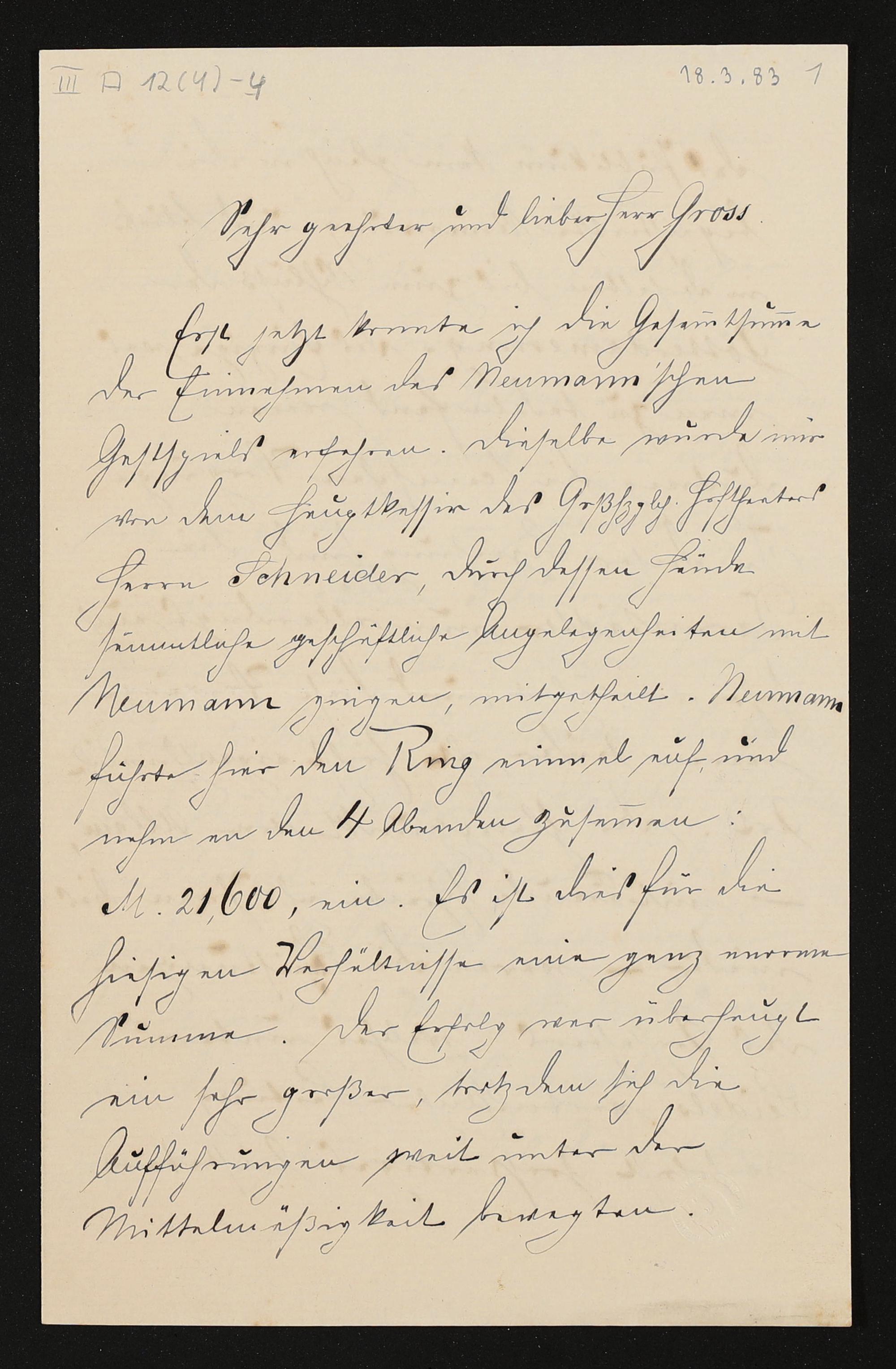 eigenhändiger Brief von Fritz Brandt an Adolf von Gross