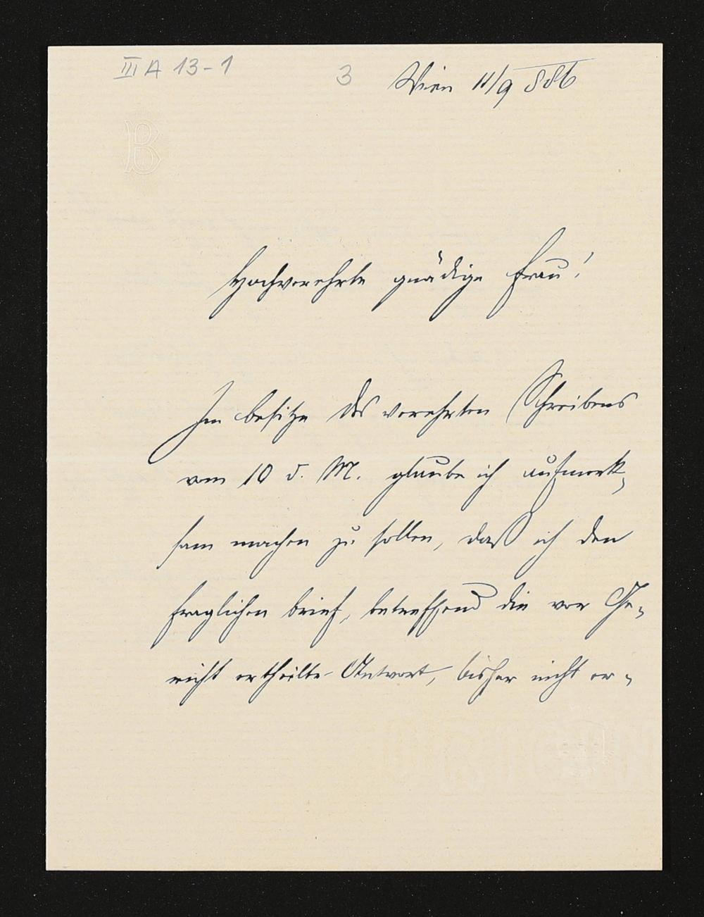 eigenhändiger Brief von Johann Brichta an Cosima Wagner