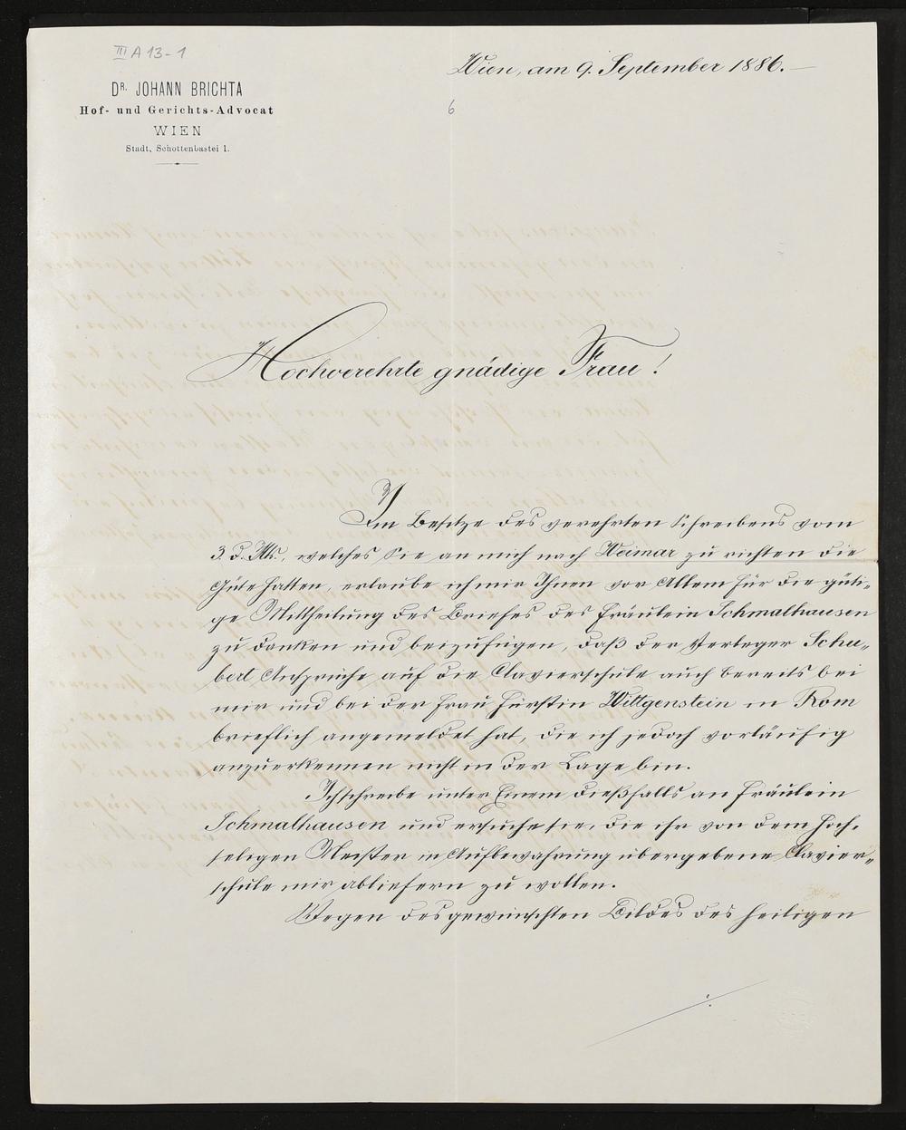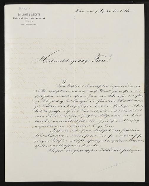 eigenhändiger Brief von Johann Brichta an Cosima Wagner
