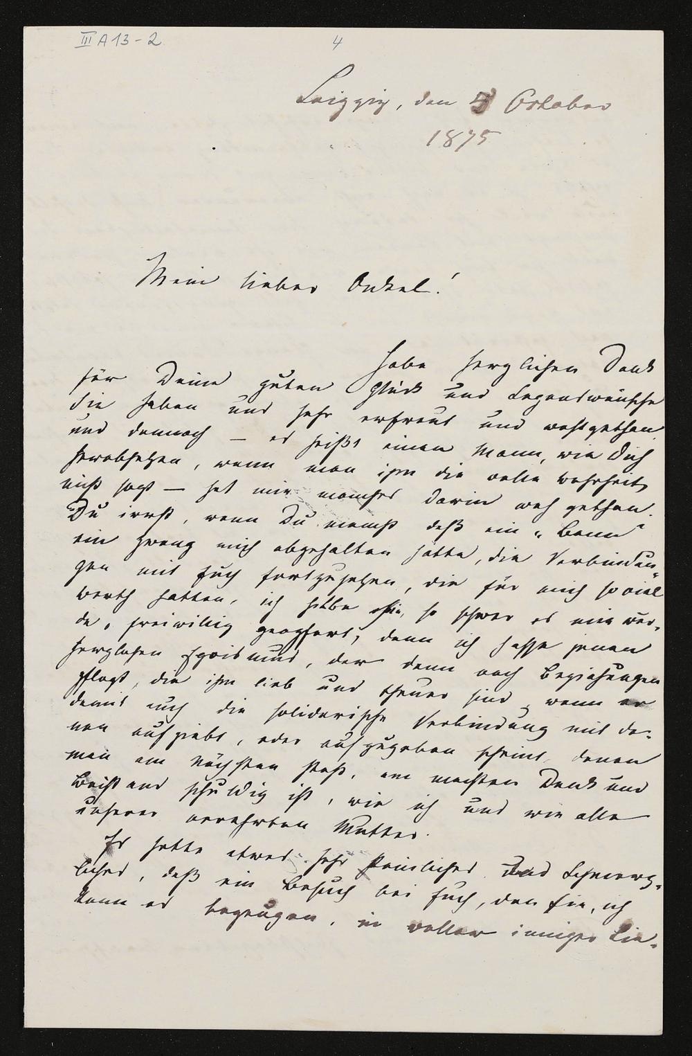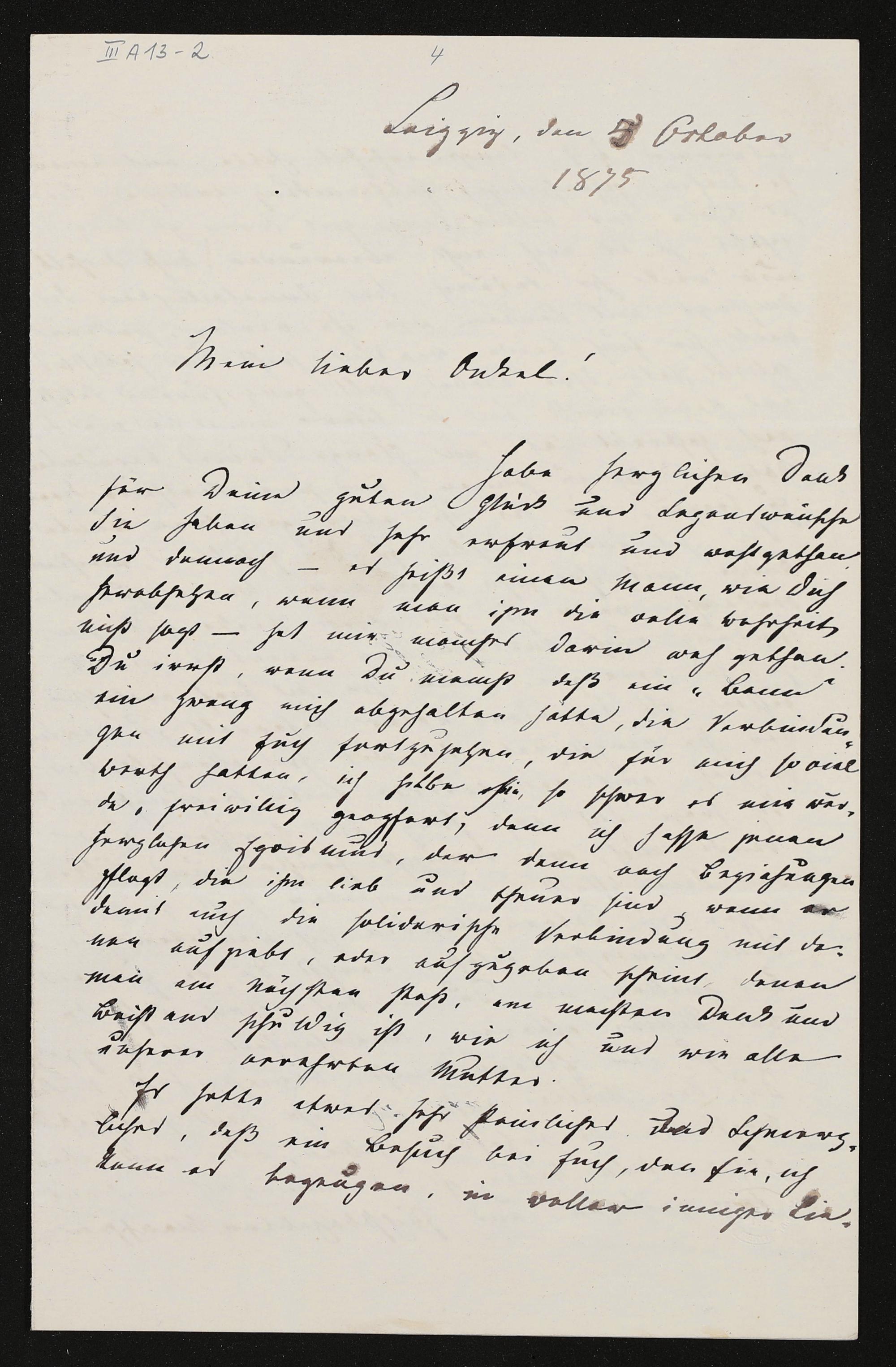 eigenhändiger Brief von Clemens Brockhaus an Richard Wagner