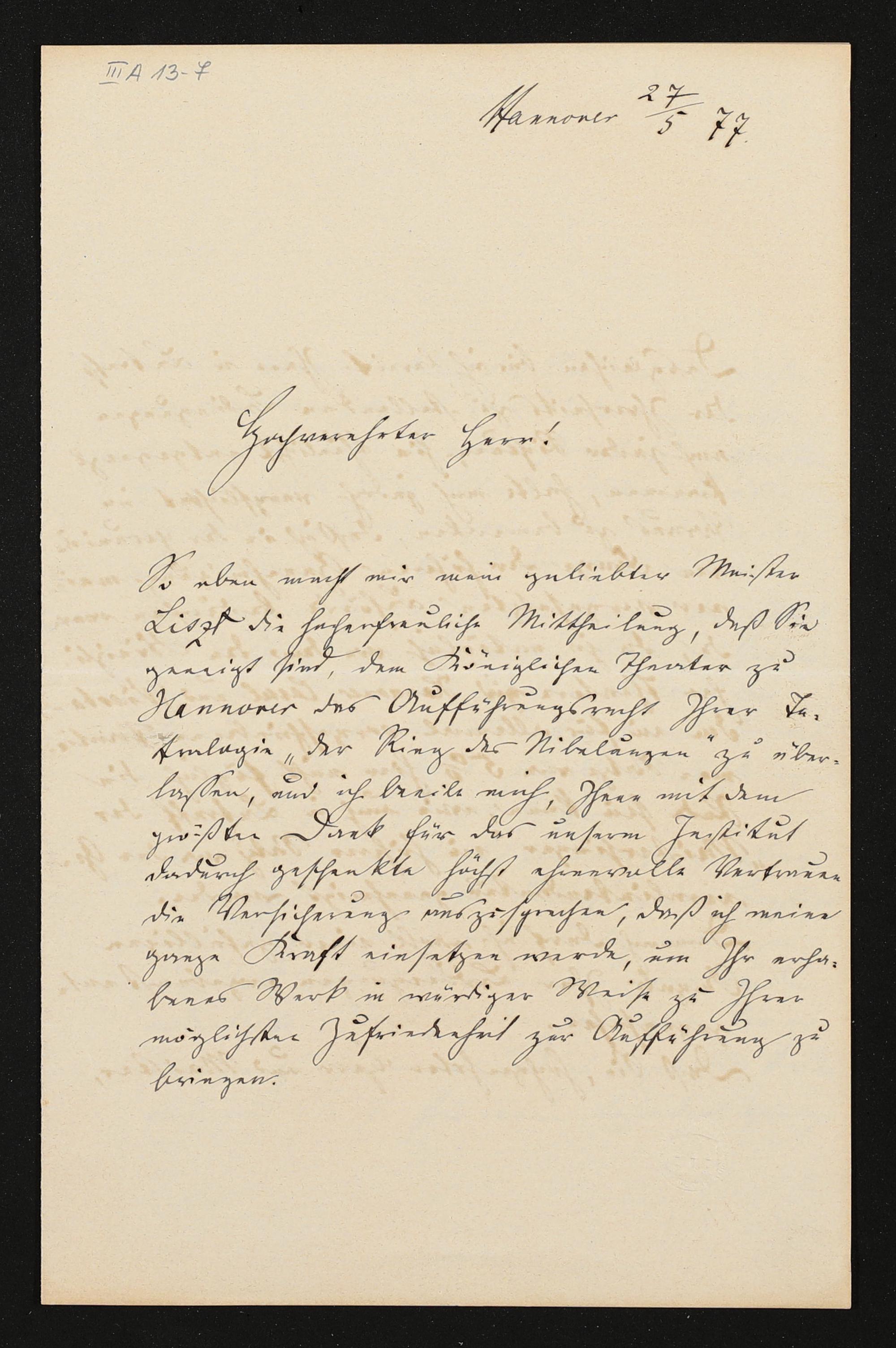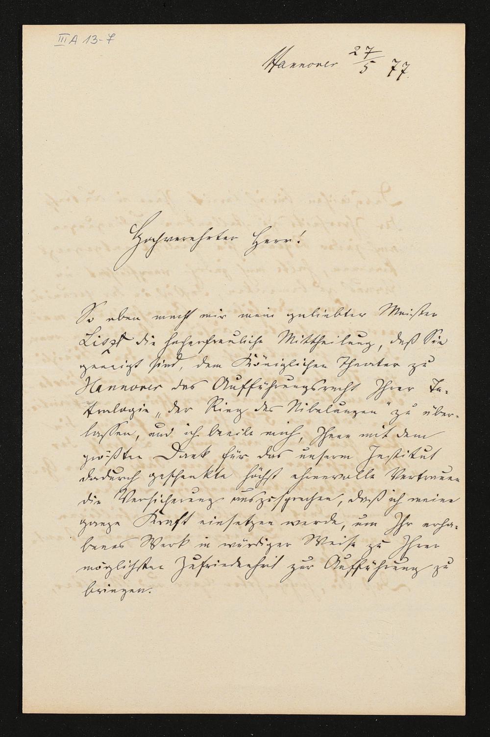 eigenhändiger Brief von Hans Bronsart an Richard Wagner