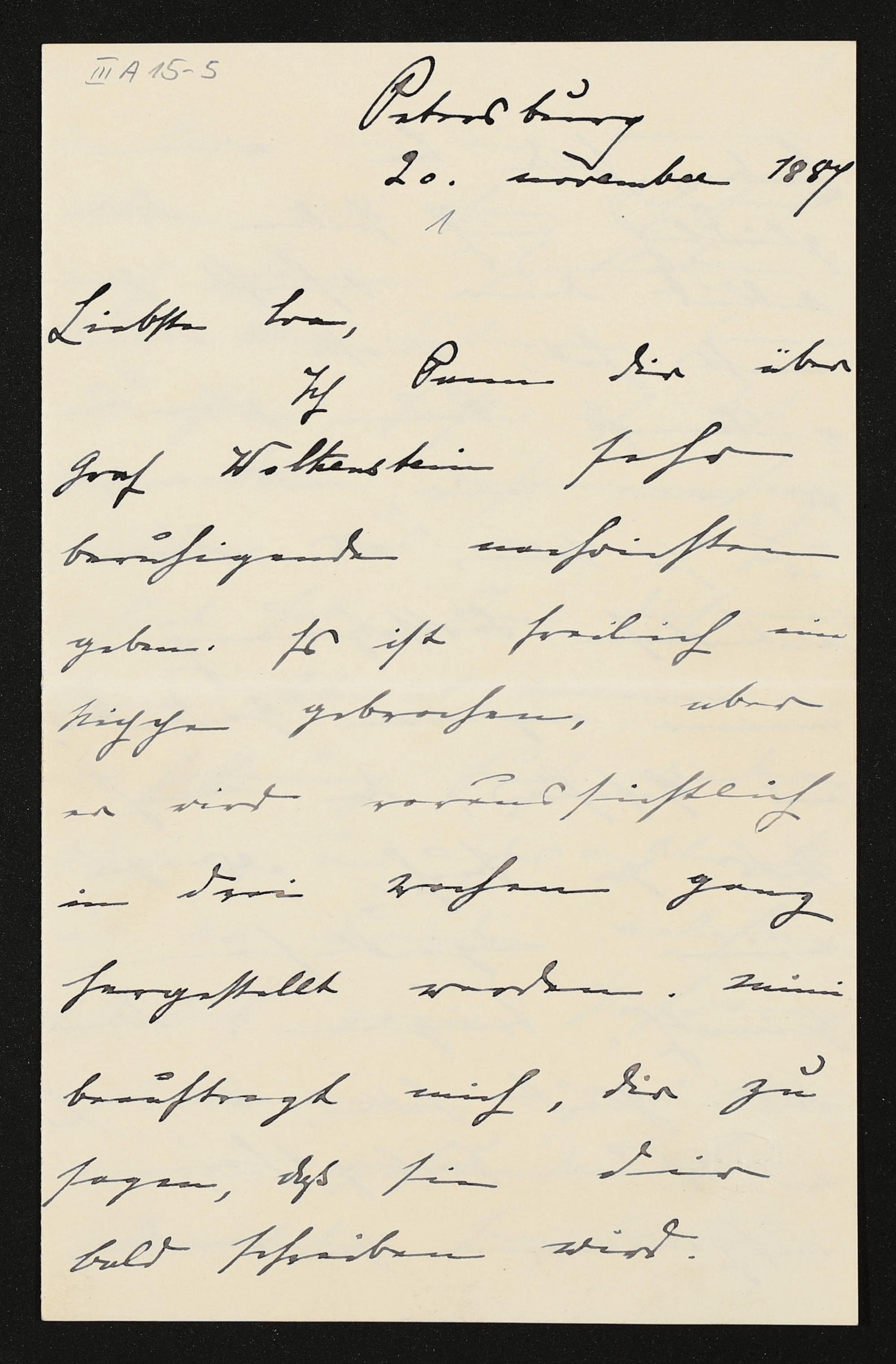 eigenhändiger Brief von Marie von Bülow an Eva Wagner