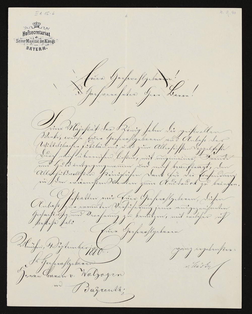 eigenhändiger Brief von Ludwig von Bürkel an Hans von Wolzogen