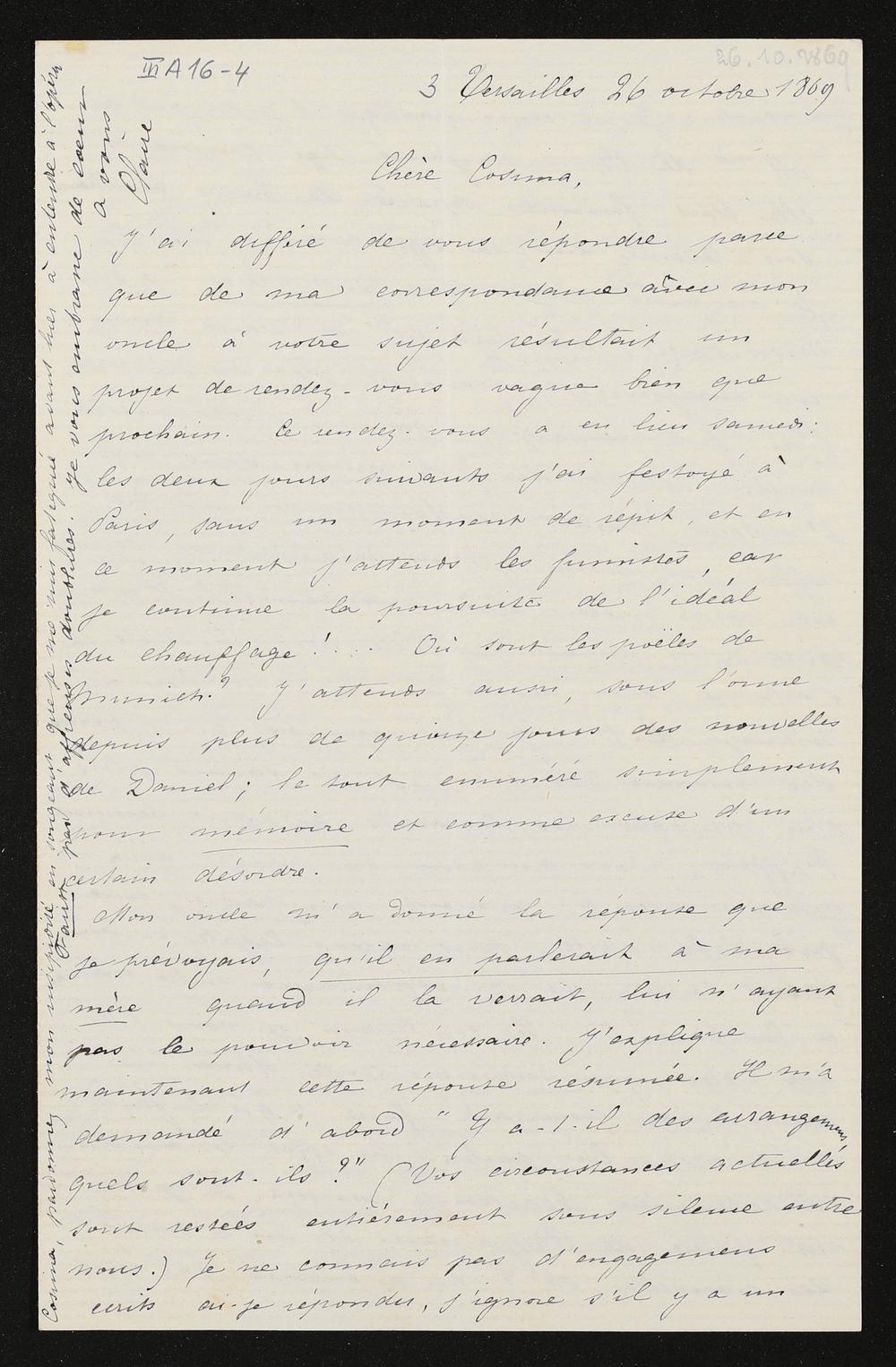 eigenhändiger Brief von Claire Marquise de Charnacé an Cosima Wagner