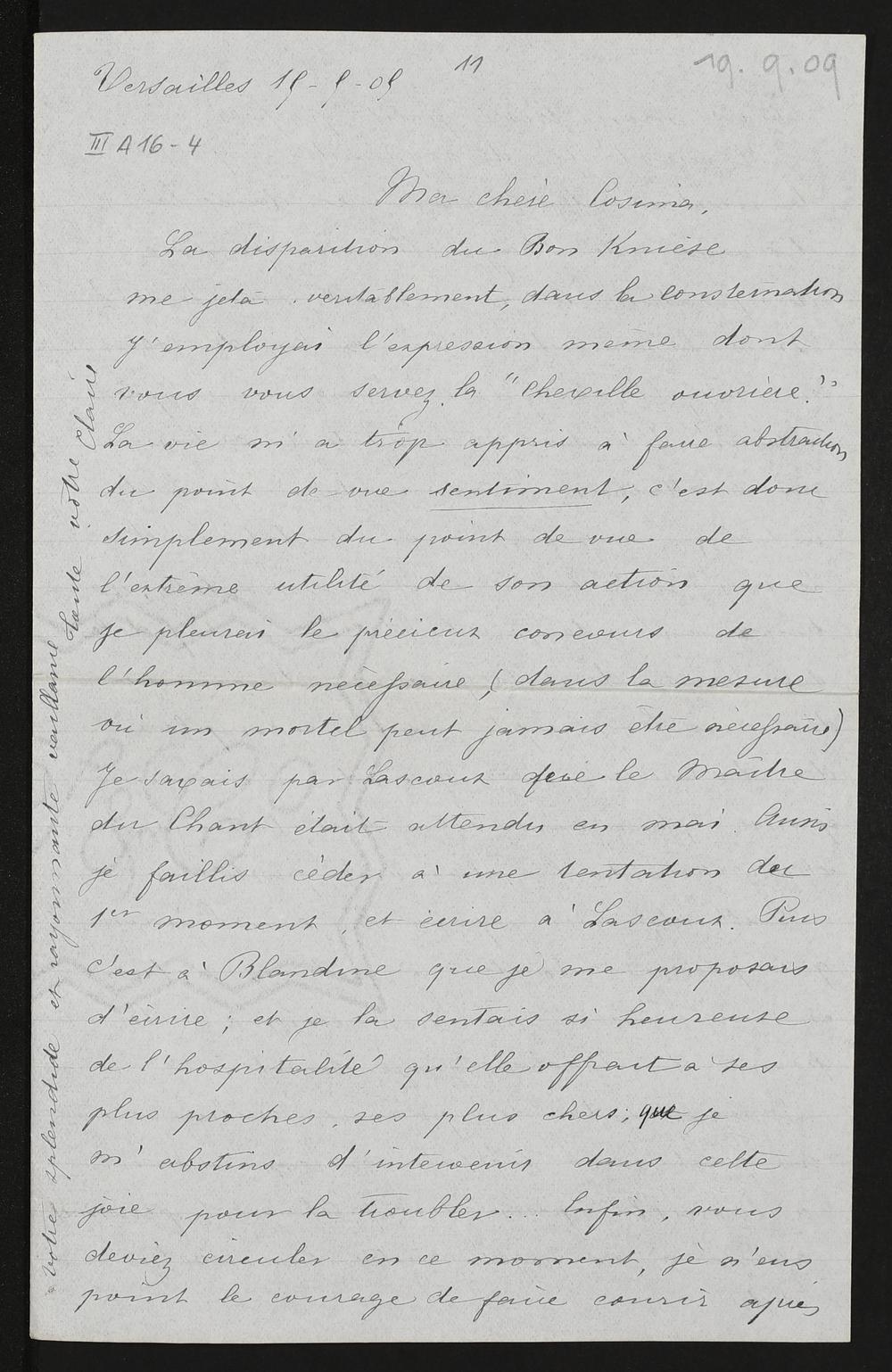 eigenhändiger Brief von Claire Marquise de Charnacé an Cosima Wagner