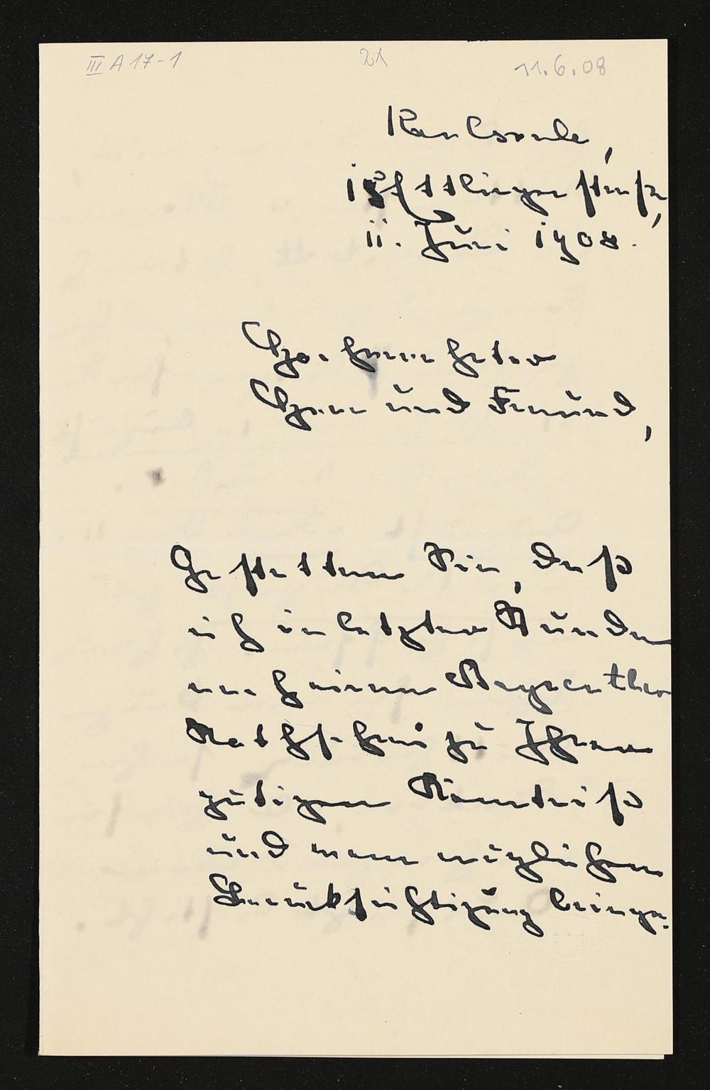 eigenhändiger Brief von Richard von Chelius an Cosima Wagner