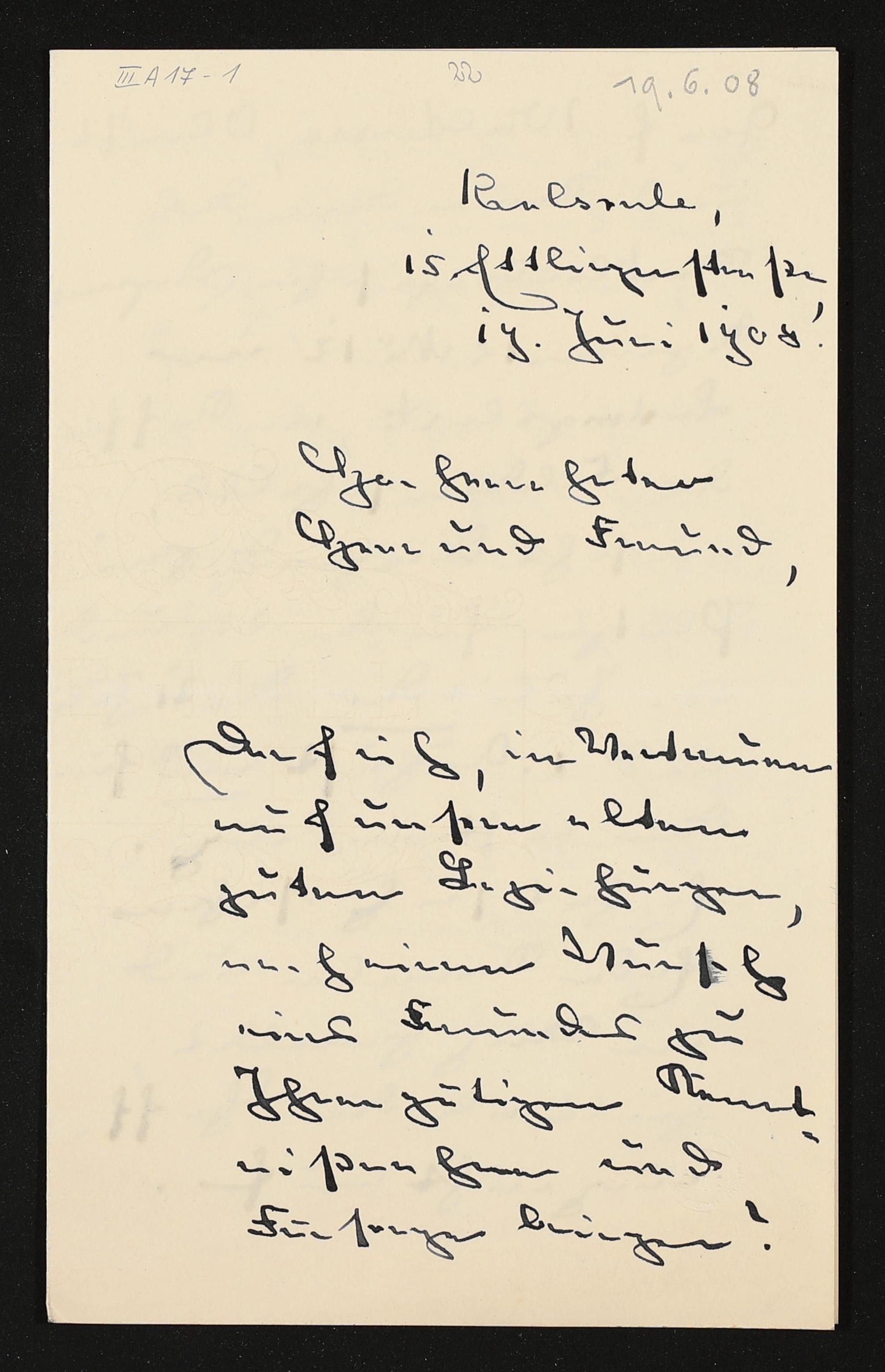 eigenhändiger Brief von Richard von Chelius an Cosima Wagner