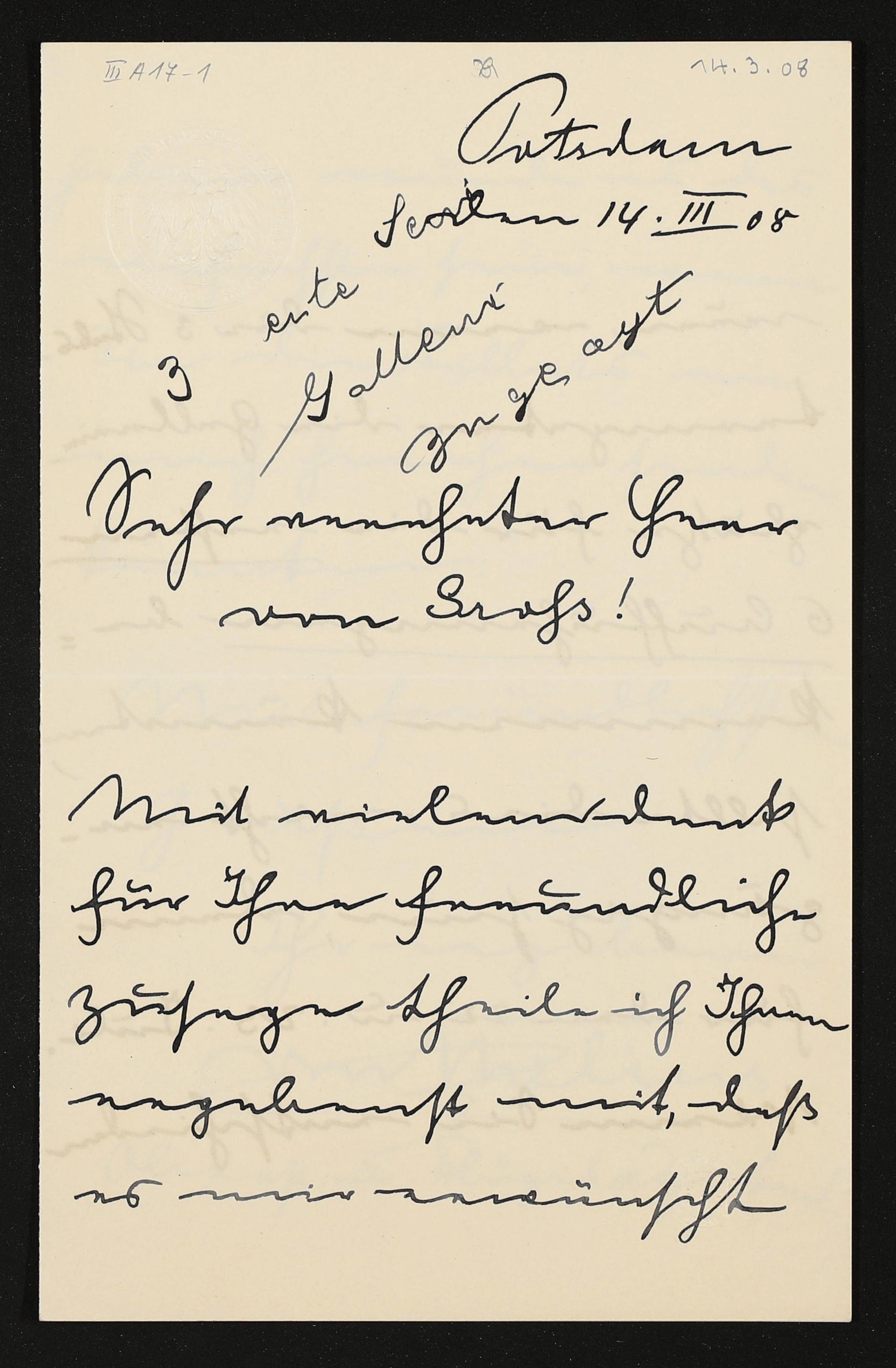 eigenhändiger Brief von Oscar von Chelius an Adolf von Gross
