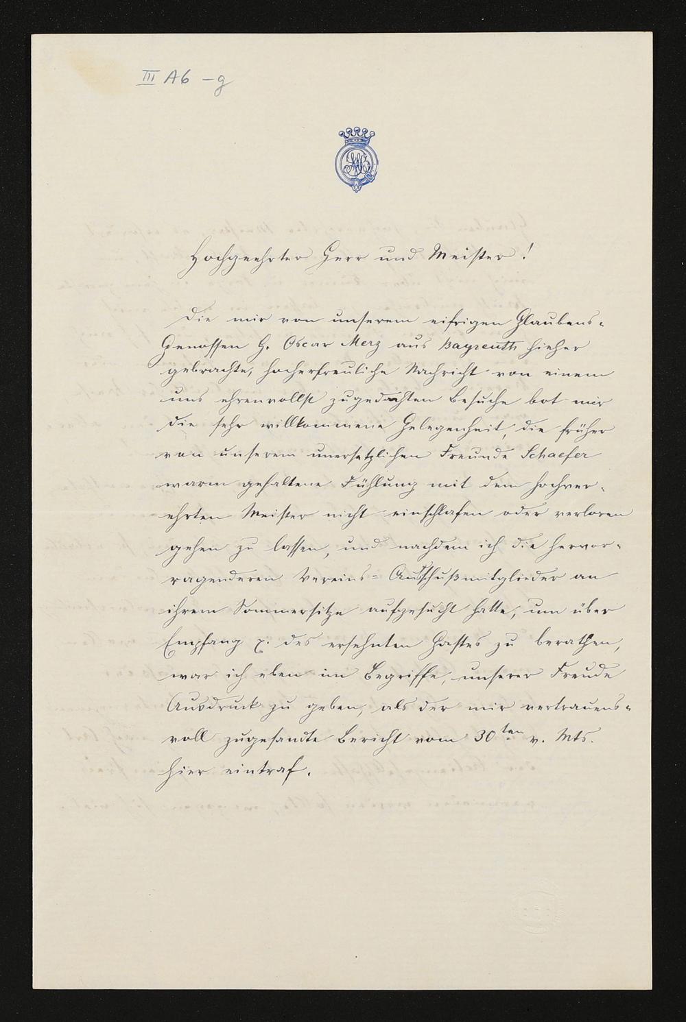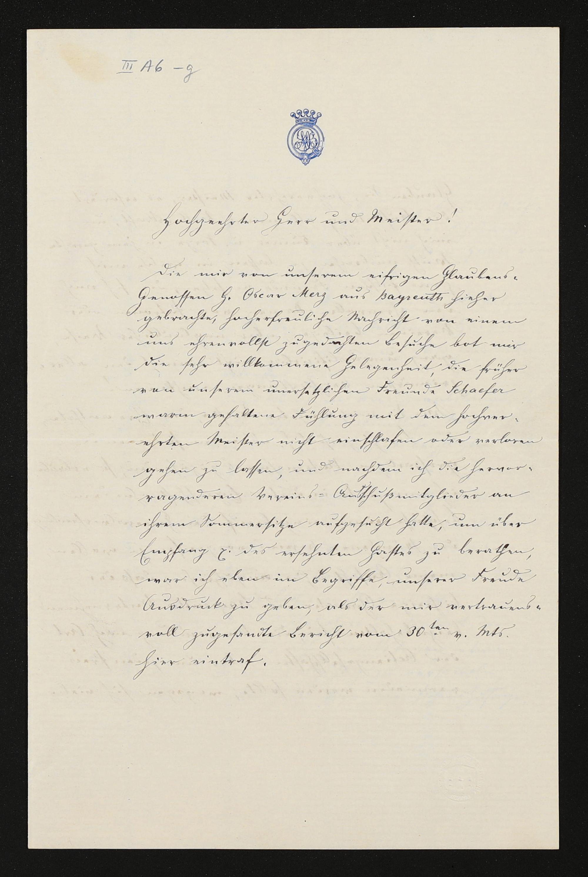 eigenhändiger Brief von Maximilian von Baligand an Richard Wagner