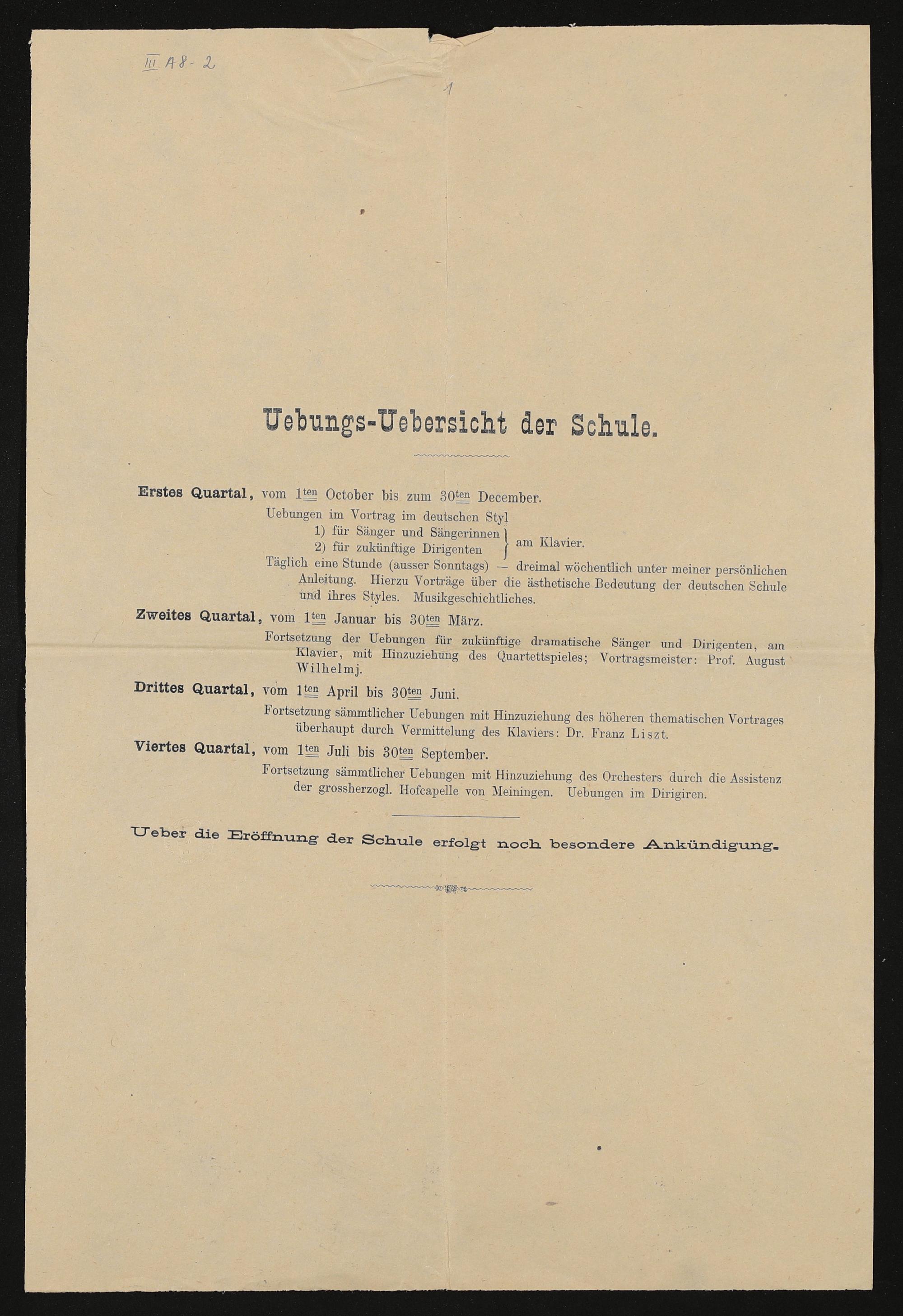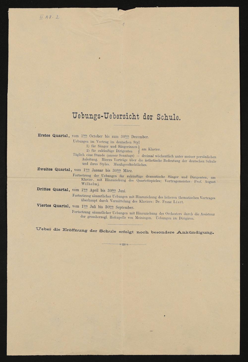 Stilbildungsschule Bayreuth: Uebungs-Uebersicht der Schule