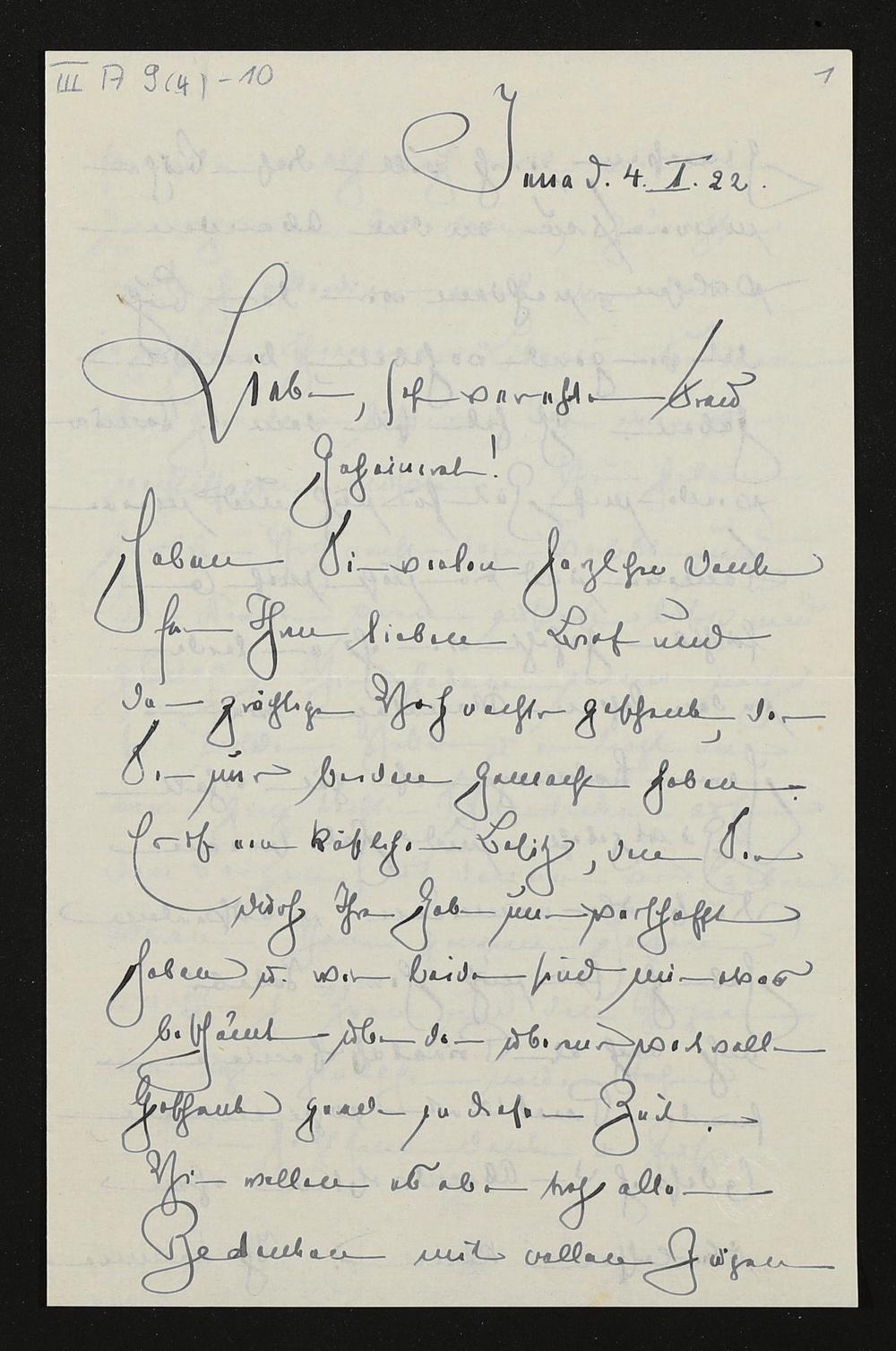 eigenhändiger Brief von J. Berger an Daniela Thode