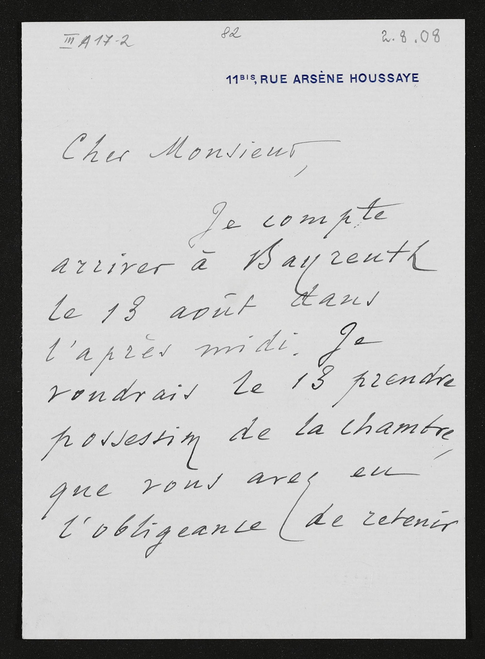 eigenhändiger Brief von P. A. Cheramy an Adolf von Gross