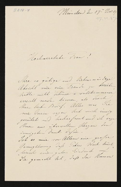 eigenhändiger Brief von Bertha Cornelius an Cosima Wagner