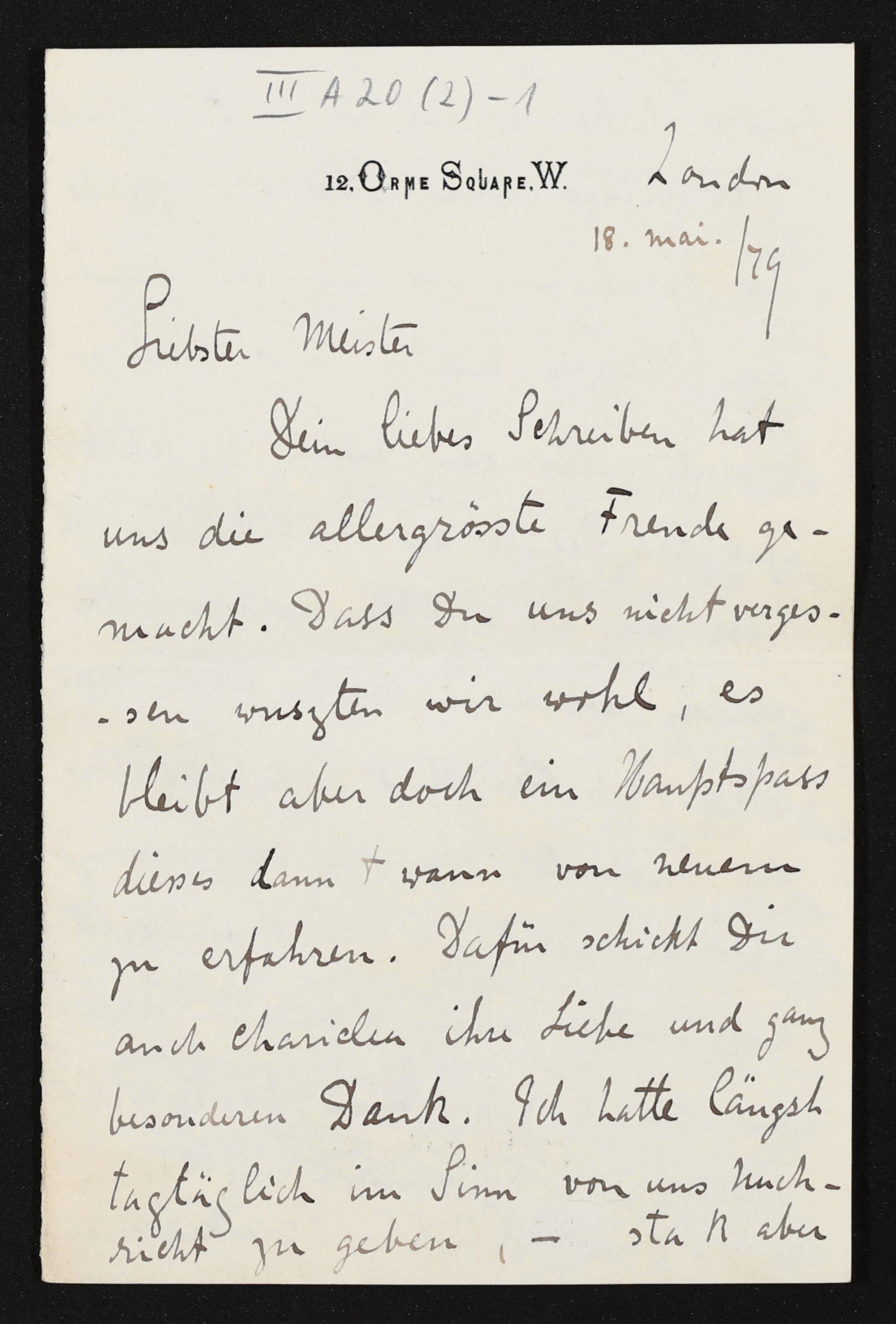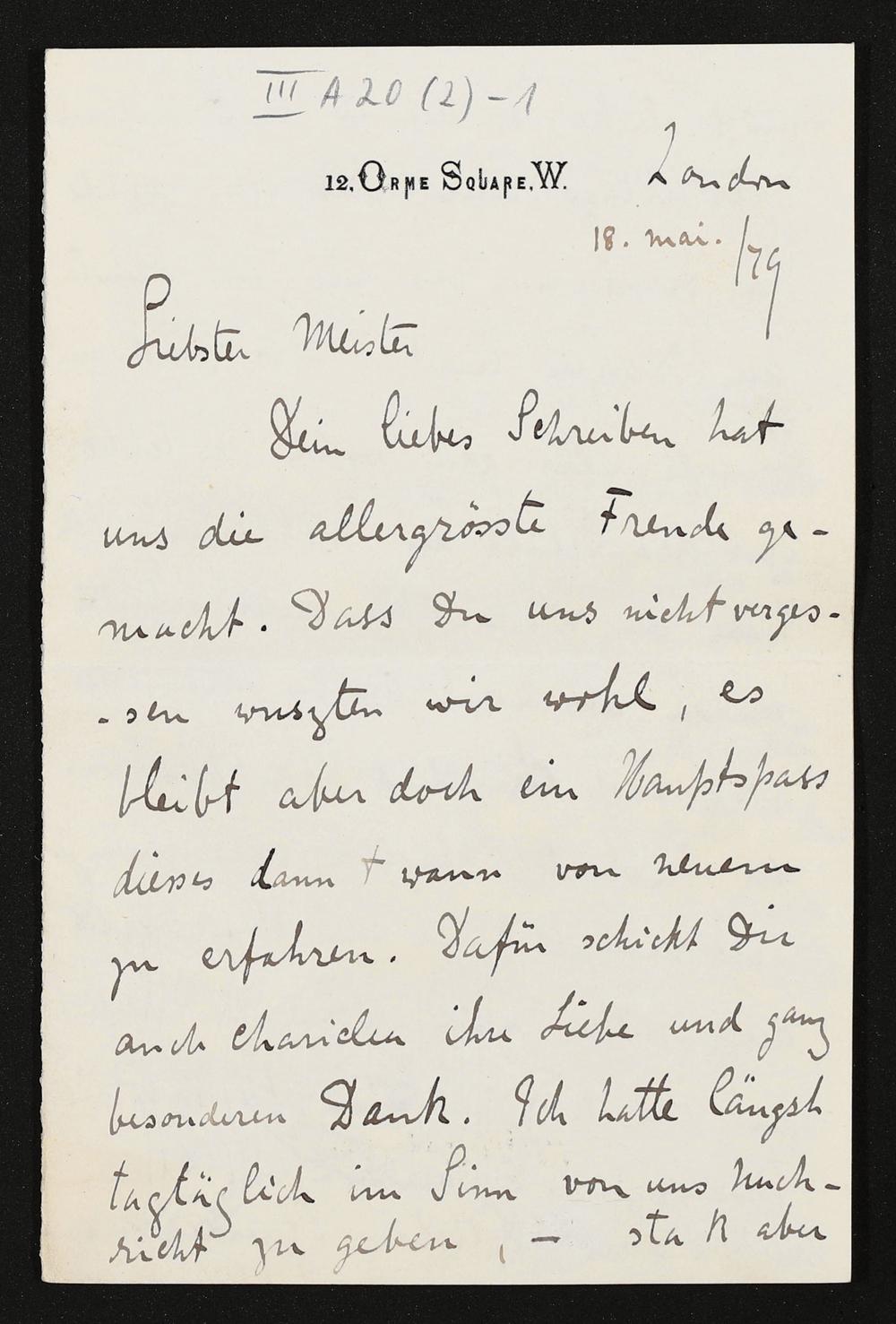 eigenhändiger Brief von Eduard Dannreuther an Richard Wagner